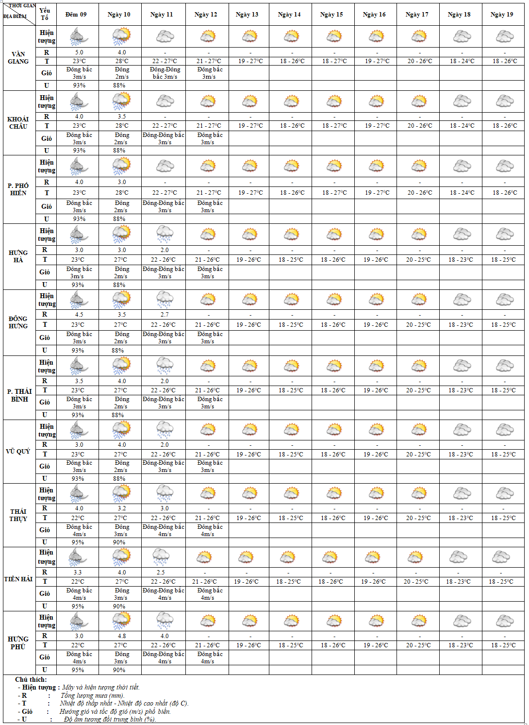 DỰ BÁO THỜI TIẾT ĐIỂM 10 NGÀY KHU VỰC HƯNG YÊN TỪ ĐÊM 09 - 19/11/2025