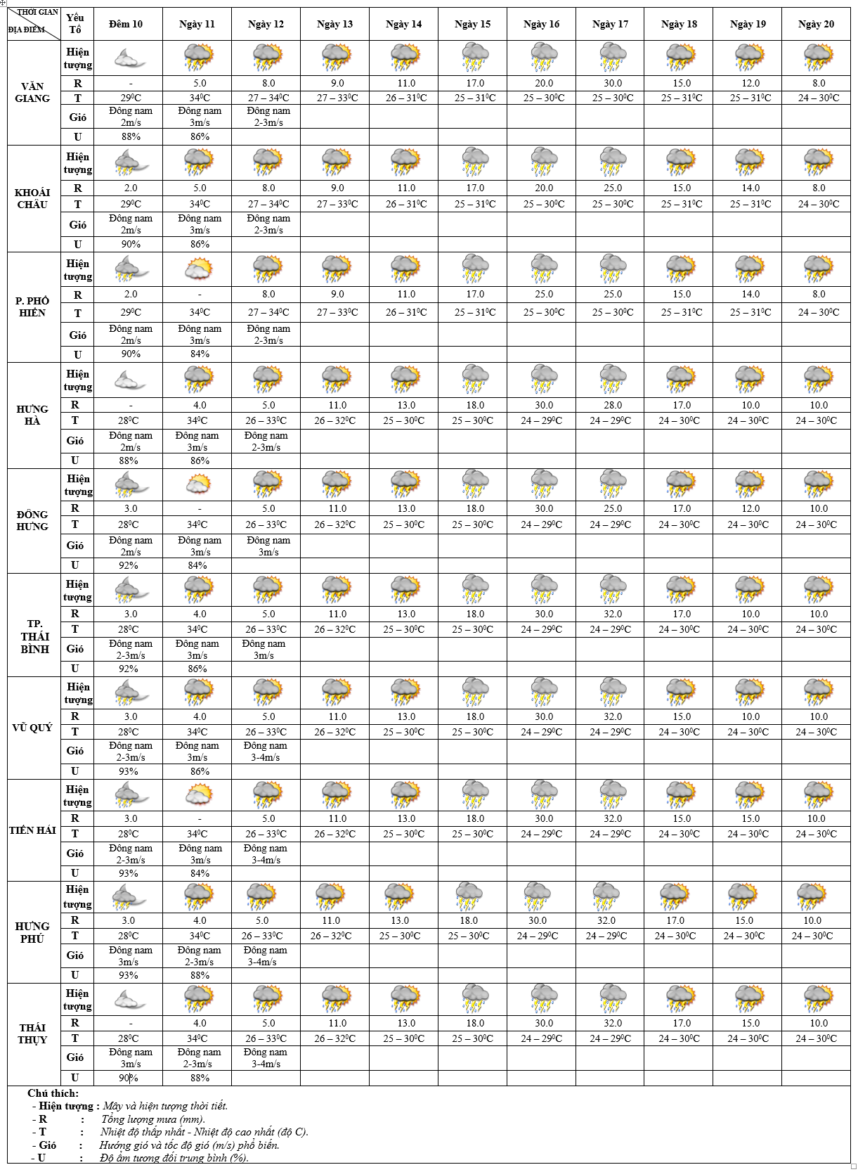 DỰ BÁO THỜI TIẾT ĐIỂM 10 NGÀY KHU VỰC HƯNG YÊN TỪ ĐÊM 10 – 20/8/2025