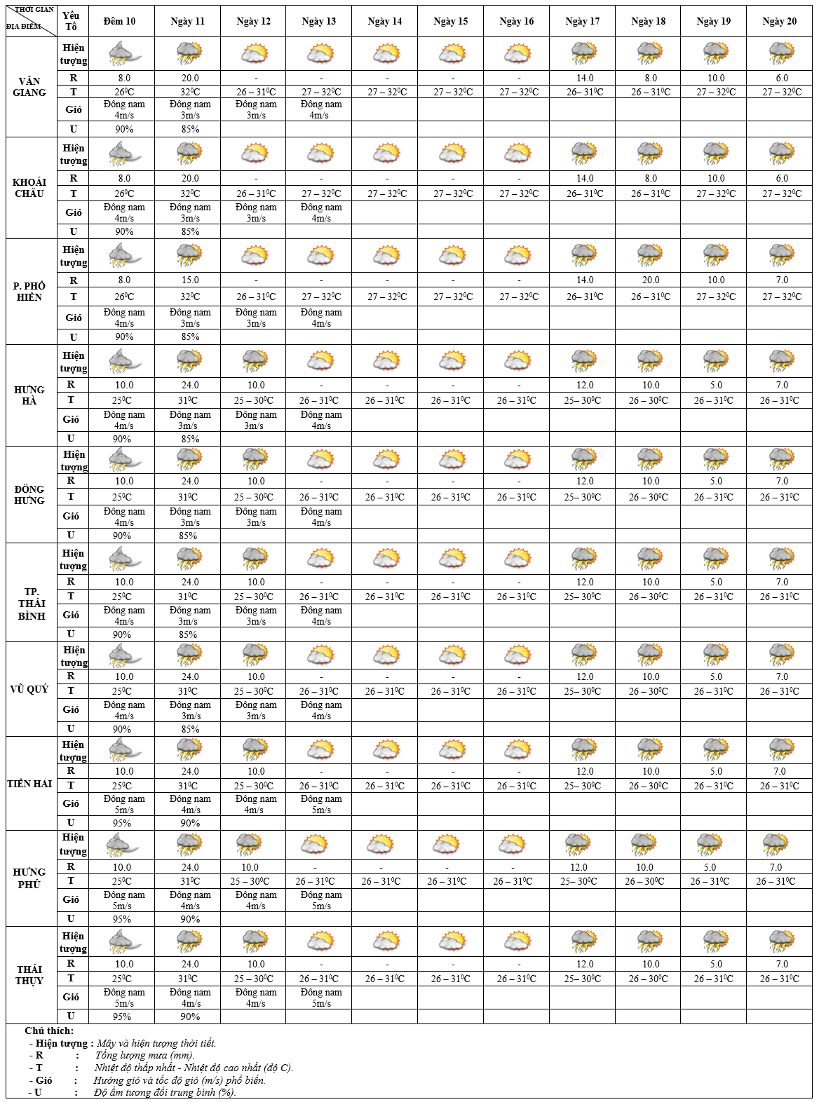DỰ BÁO THỜI TIẾT ĐIỂM 10 NGÀY KHU VỰC HƯNG YÊN TỪ ĐÊM 10 - 20/9/2025