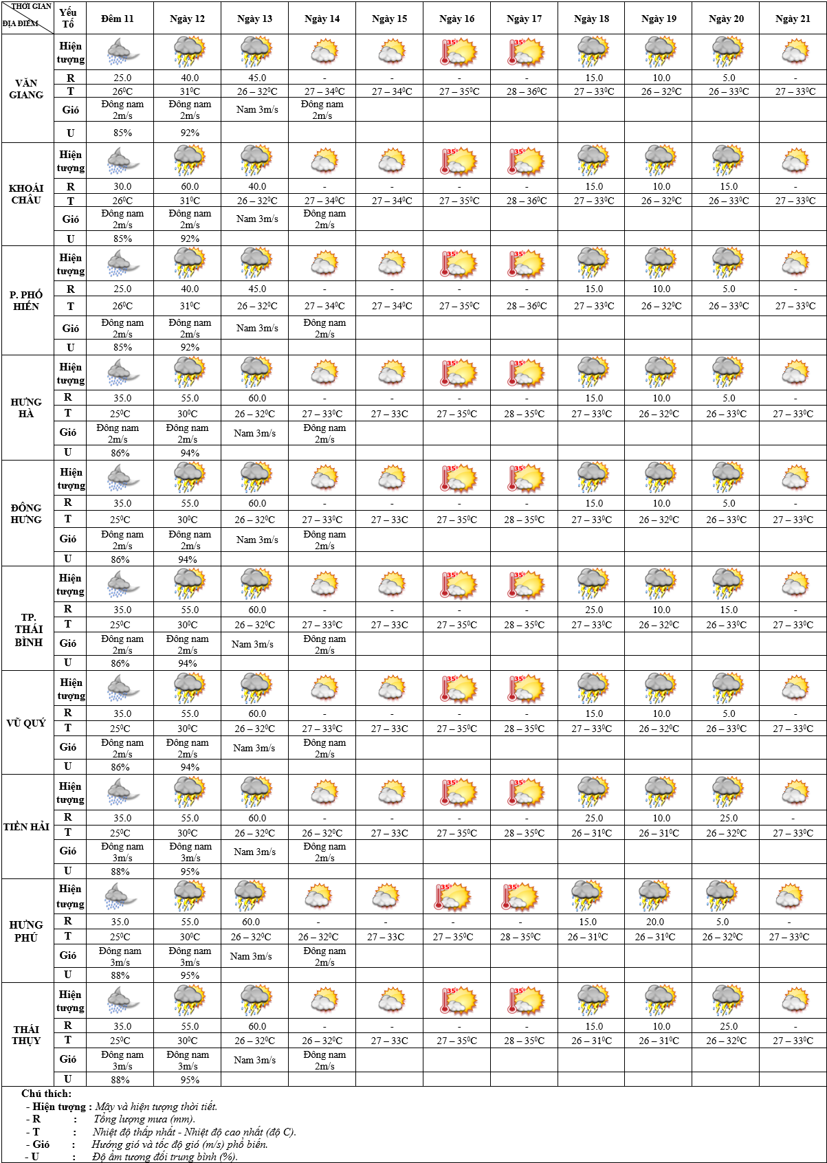 DỰ BÁO THỜI TIẾT ĐIỂM 10 NGÀY KHU VỰC HƯNG YÊN TỪ ĐÊM 11 – 21/7/2025