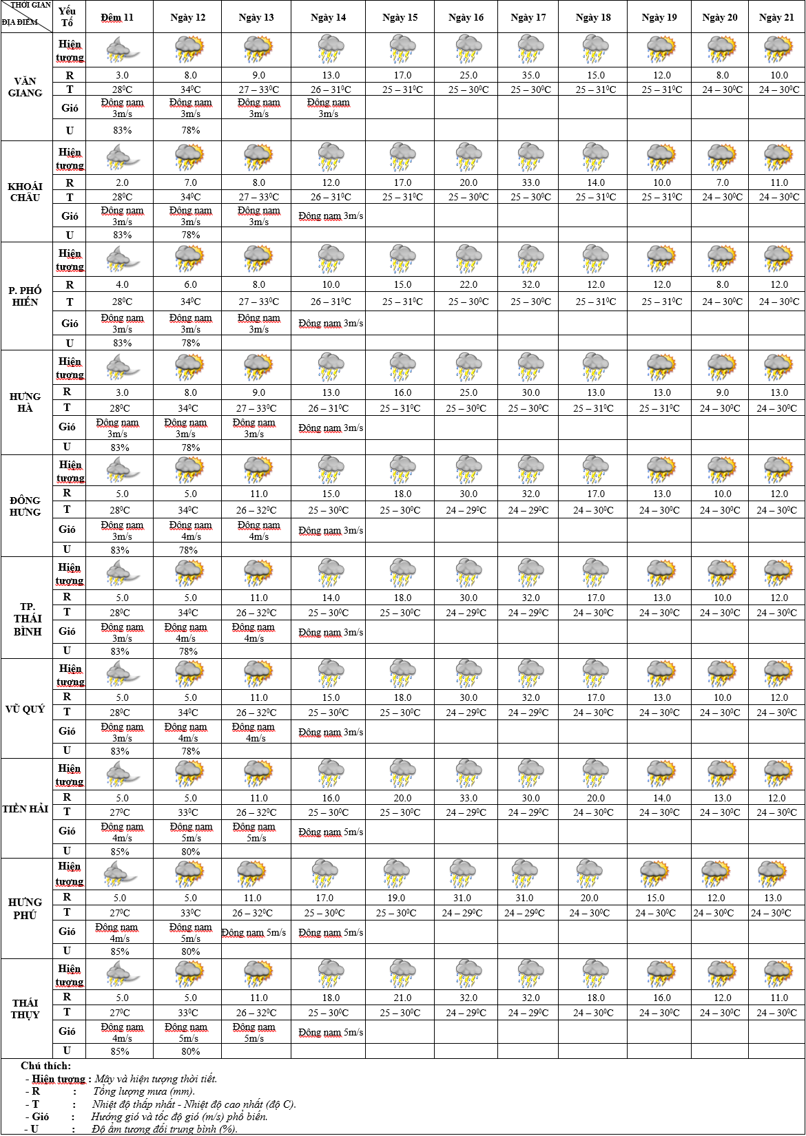 DỰ BÁO THỜI TIẾT ĐIỂM 10 NGÀY KHU VỰC HƯNG YÊN TỪ ĐÊM 11 – 21/8/2025