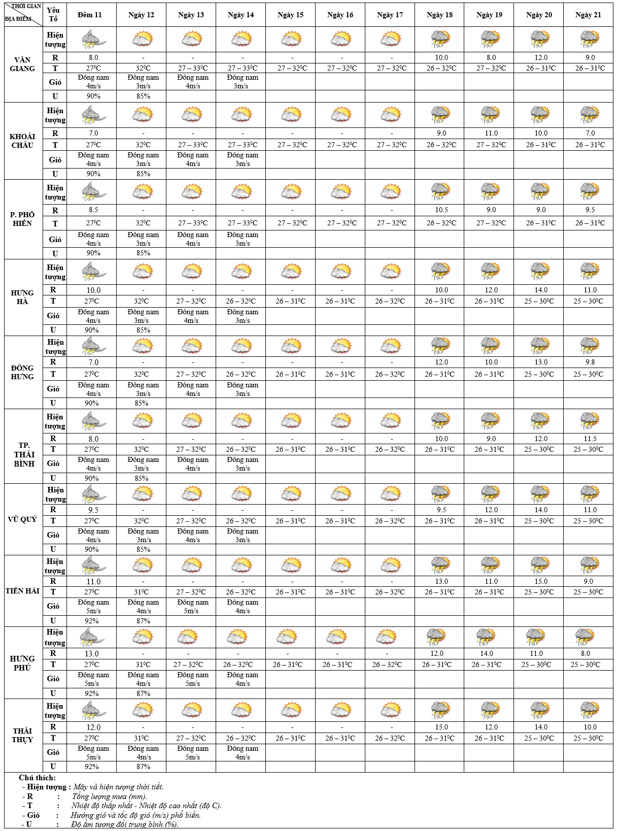 DỰ BÁO THỜI TIẾT ĐIỂM 10 NGÀY KHU VỰC HƯNG YÊN TỪ ĐÊM 11 - 21/9/2025