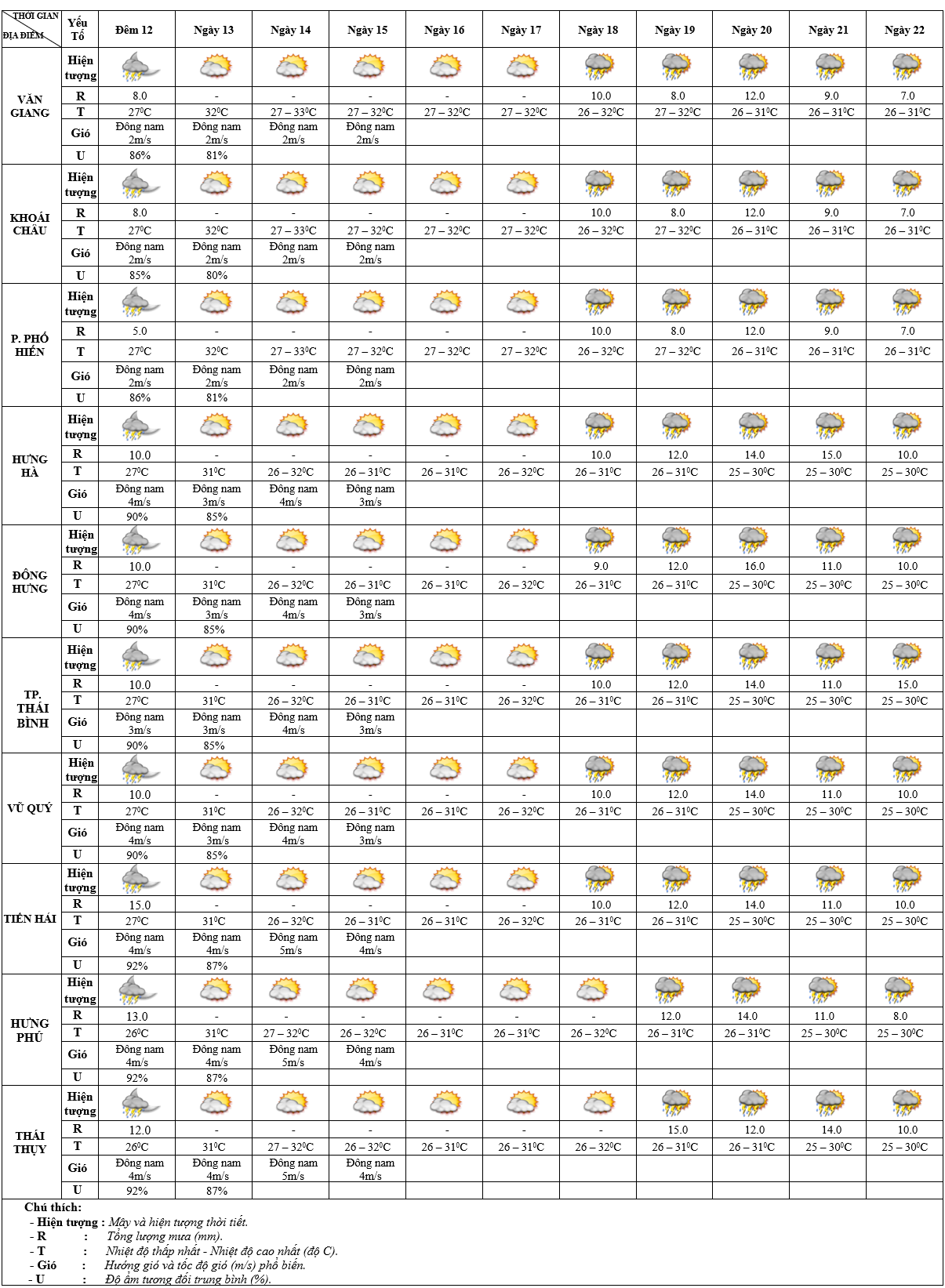 DỰ BÁO THỜI TIẾT ĐIỂM 10 NGÀY KHU VỰC HƯNG YÊN TỪ ĐÊM 12 - 22/9/2025