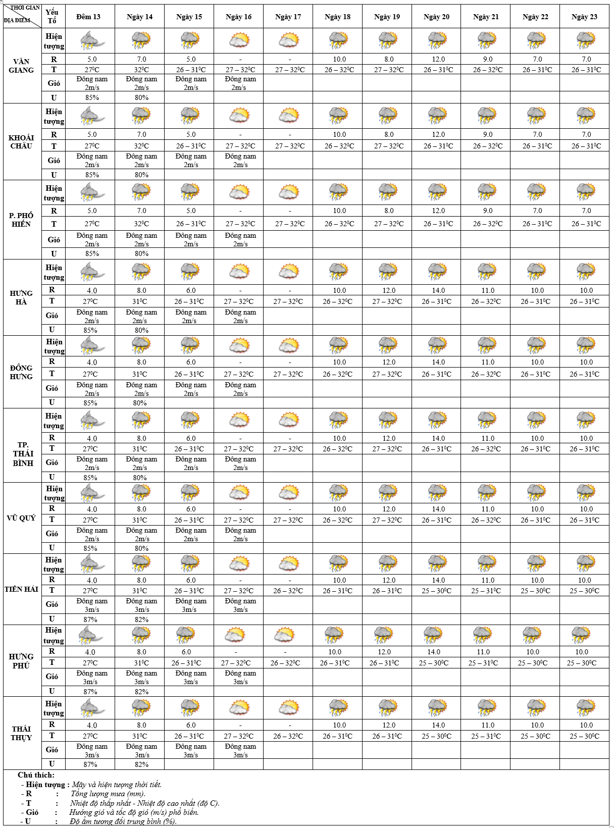 DỰ BÁO THỜI TIẾT ĐIỂM 10 NGÀY KHU VỰC HƯNG YÊN TỪ ĐÊM 13 - 23/9/2025