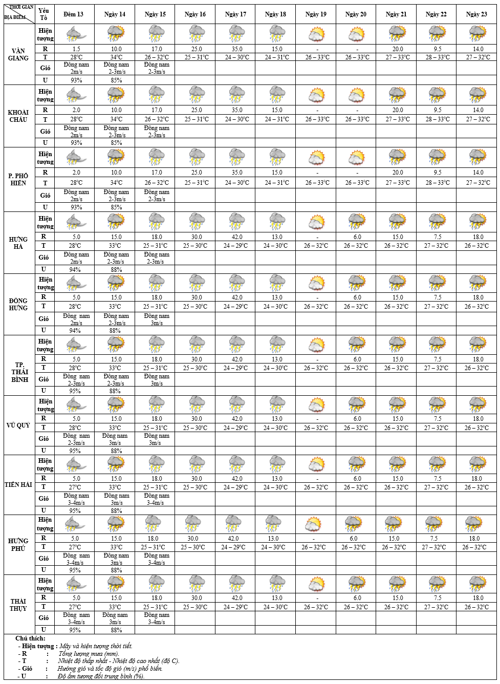 DỰ BÁO THỜI TIẾT ĐIỂM 10 NGÀY KHU VỰC HƯNG YÊN TỪ ĐÊM 13/8 – 23/8/2025