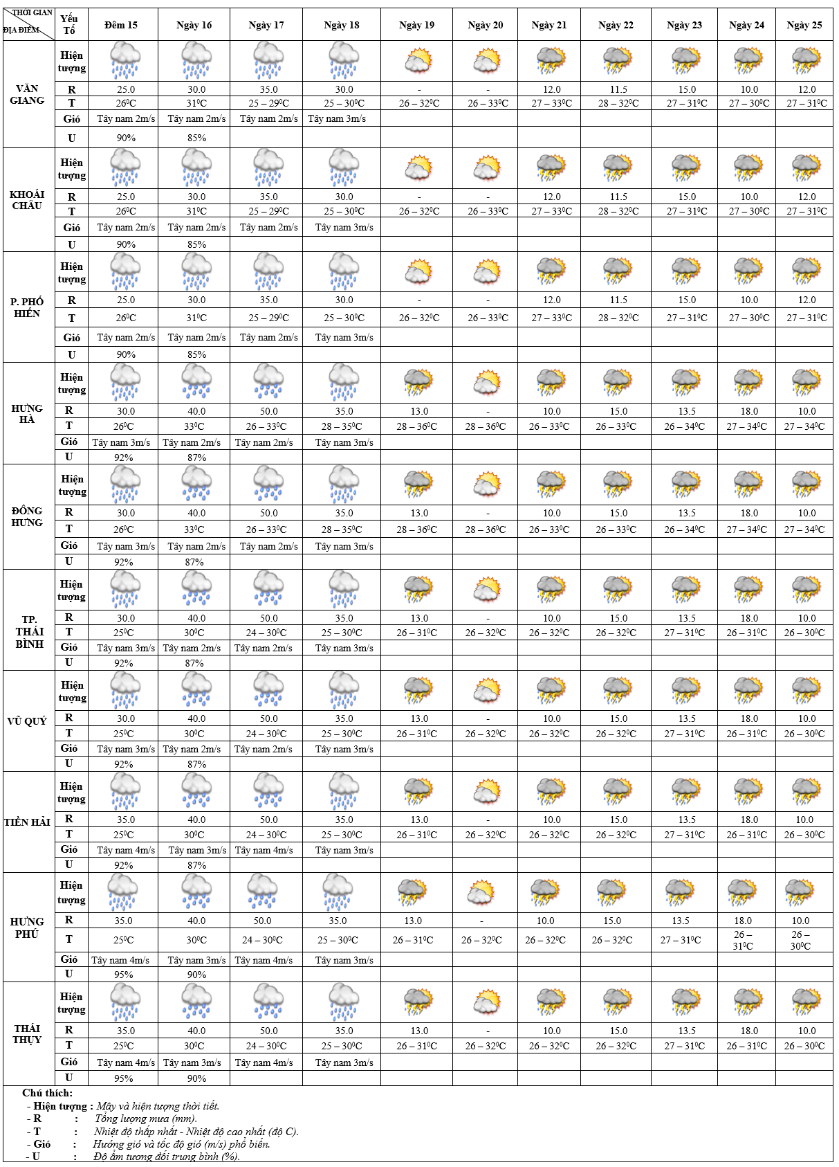DỰ BÁO THỜI TIẾT ĐIỂM 10 NGÀY KHU VỰC HƯNG YÊN TỪ ĐÊM 15 – 25/8/2025