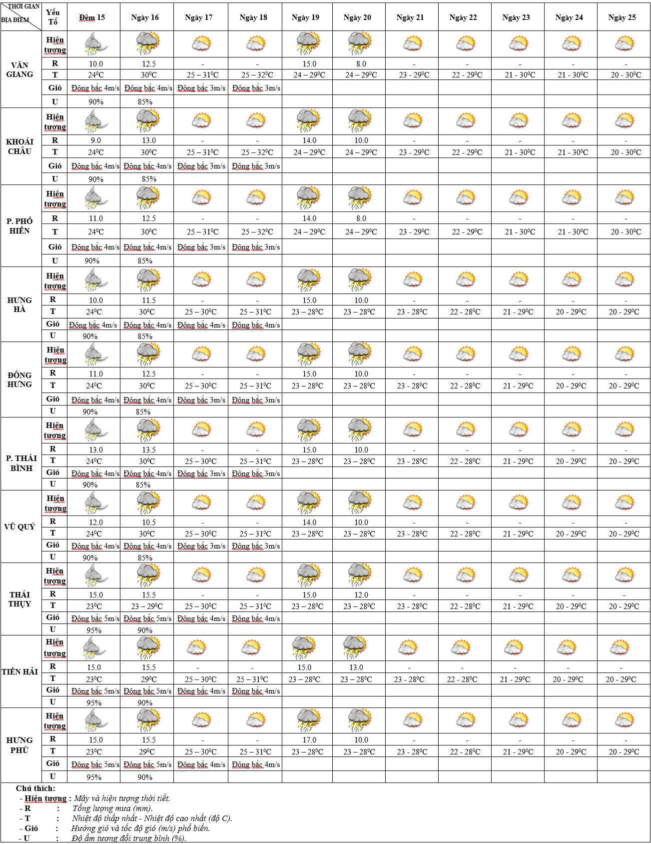 DỰ BÁO THỜI TIẾT ĐIỂM 10 NGÀY KHU VỰC HƯNG YÊN TỪ ĐÊM 15 - 25/10/2025