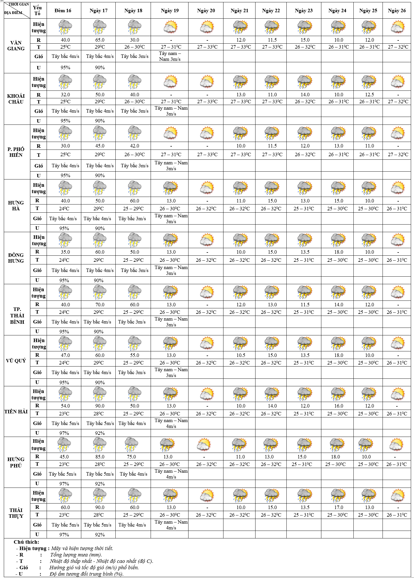 DỰ BÁO THỜI TIẾT ĐIỂM 10 NGÀY KHU VỰC HƯNG YÊN TỪ ĐÊM 16 – 26/8/2025