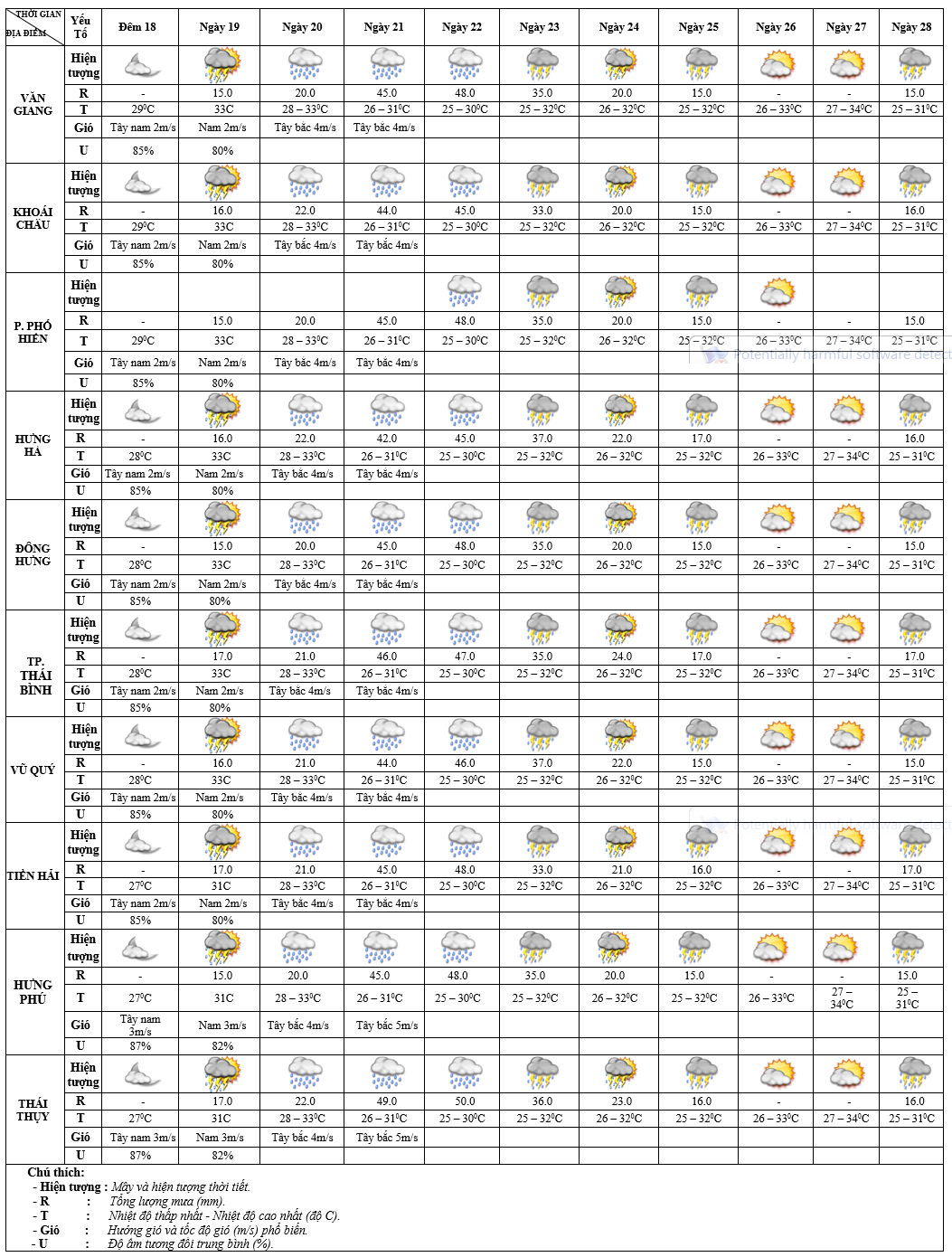 DỰ BÁO THỜI TIẾT ĐIỂM 10 NGÀY KHU VỰC HƯNG YÊN TỪ ĐÊM 18 – 28/7/2025