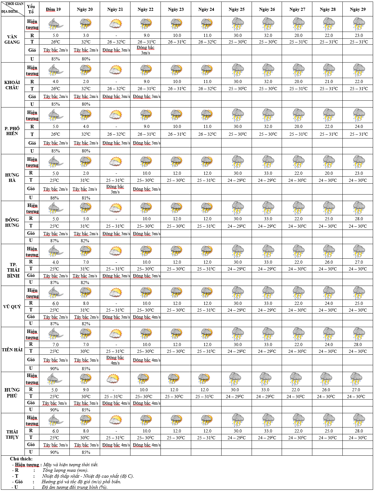 DỰ BÁO THỜI TIẾT ĐIỂM 10 NGÀY KHU VỰC HƯNG YÊN TỪ ĐÊM 19 - 29/9/2025
