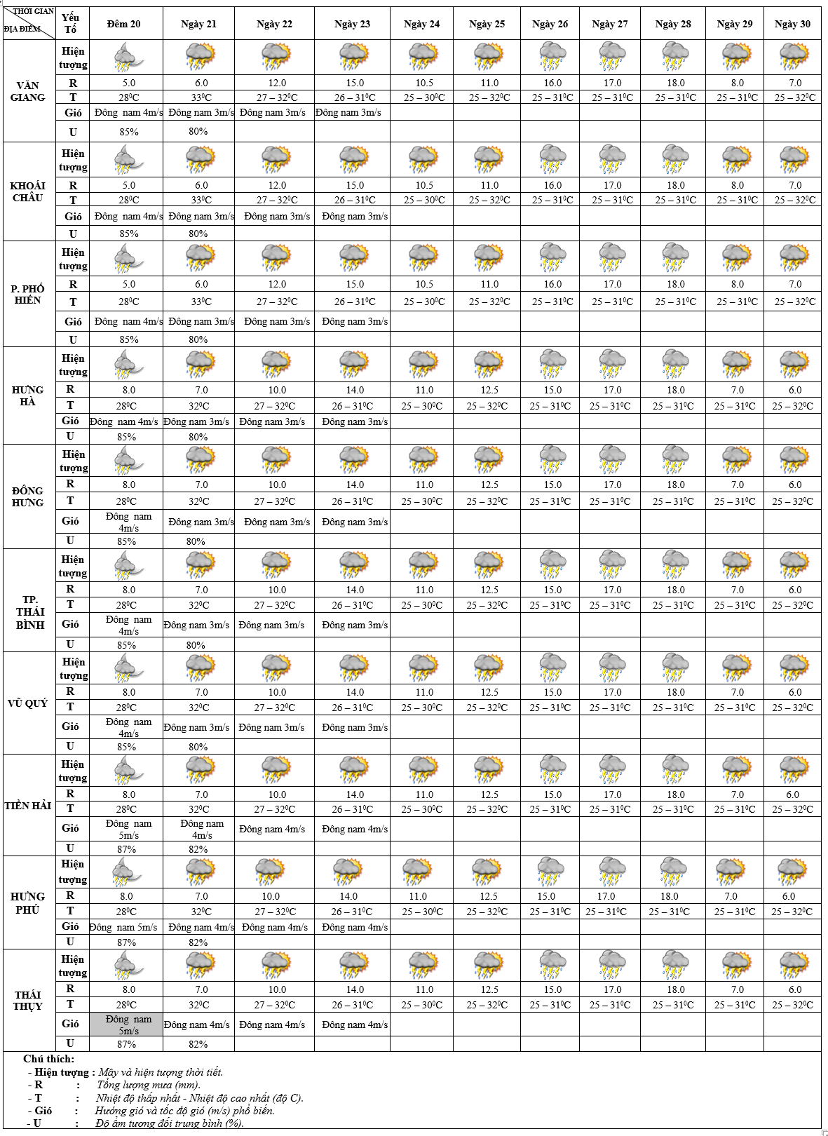 DỰ BÁO THỜI TIẾT ĐIỂM 10 NGÀY KHU VỰC HƯNG YÊN TỪ ĐÊM 20 – 30/8/2025