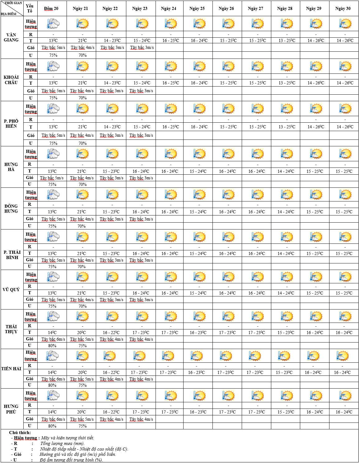 DỰ BÁO THỜI TIẾT ĐIỂM 10 NGÀY KHU VỰC HƯNG YÊN TỪ ĐÊM 20 - 30/11/2025