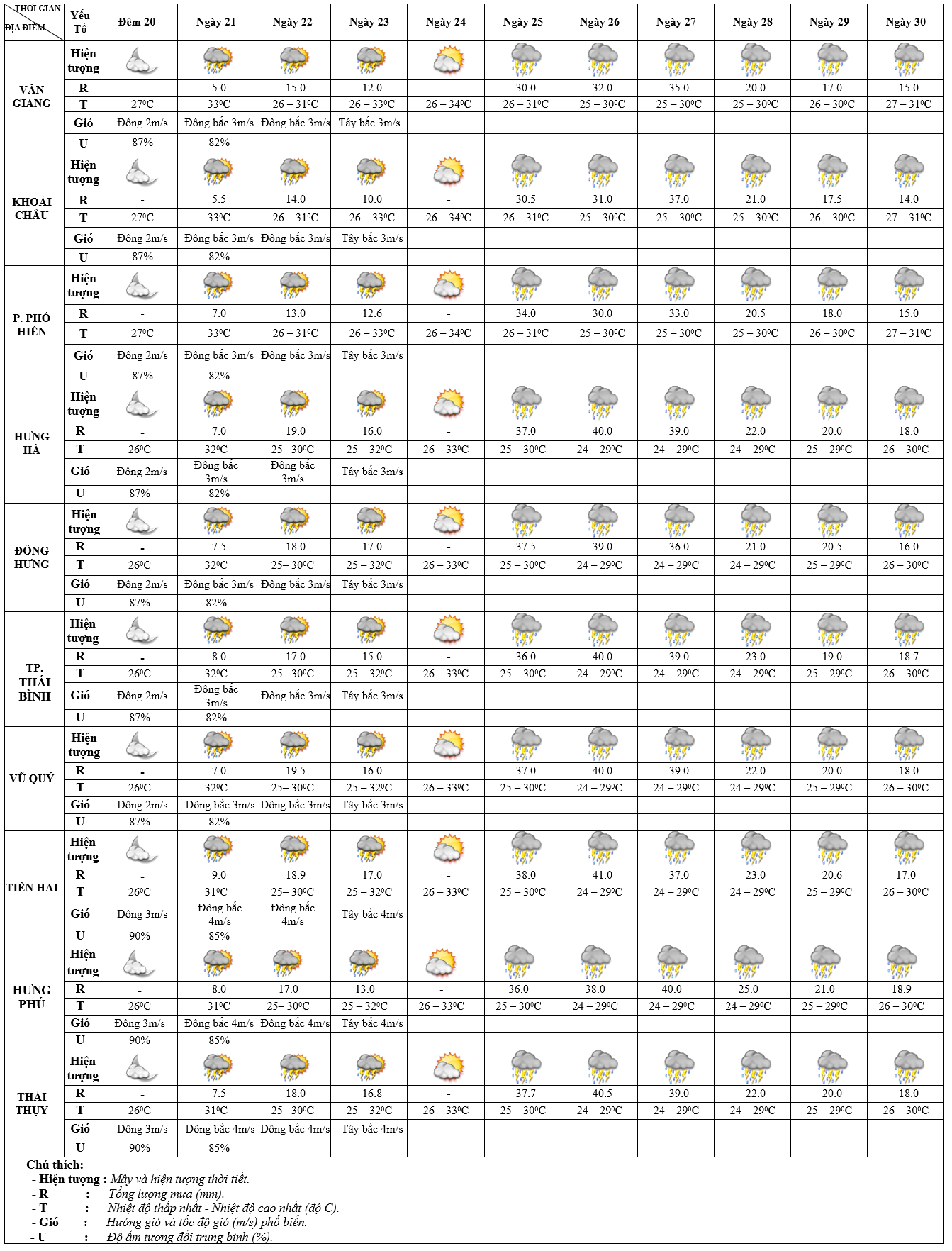 DỰ BÁO THỜI TIẾT ĐIỂM 10 NGÀY KHU VỰC HƯNG YÊN TỪ ĐÊM 20 - 30/9/2025