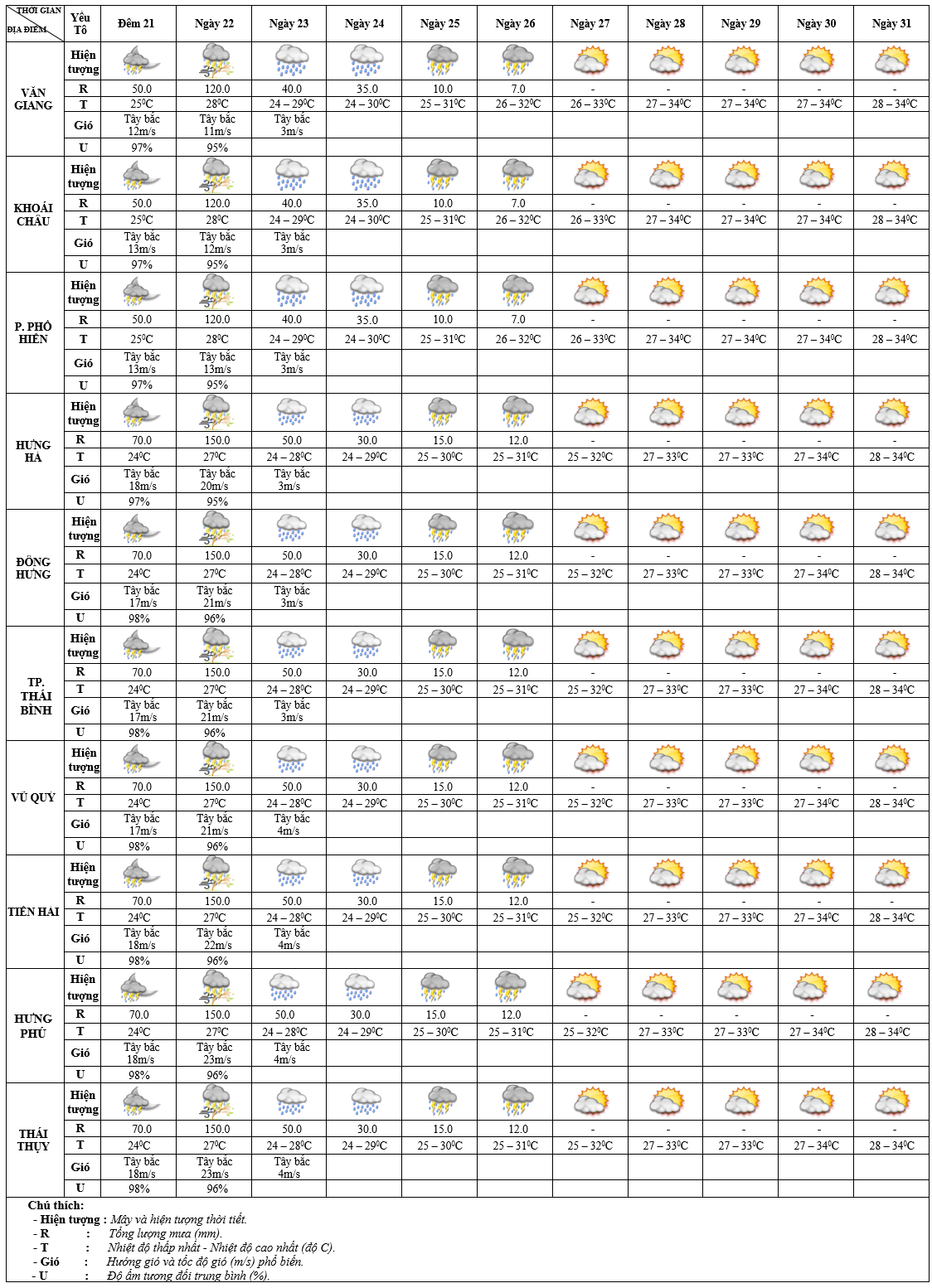 DỰ BÁO THỜI TIẾT ĐIỂM 10 NGÀY KHU VỰC HƯNG YÊN TỪ ĐÊM 21 – 31/7/2025