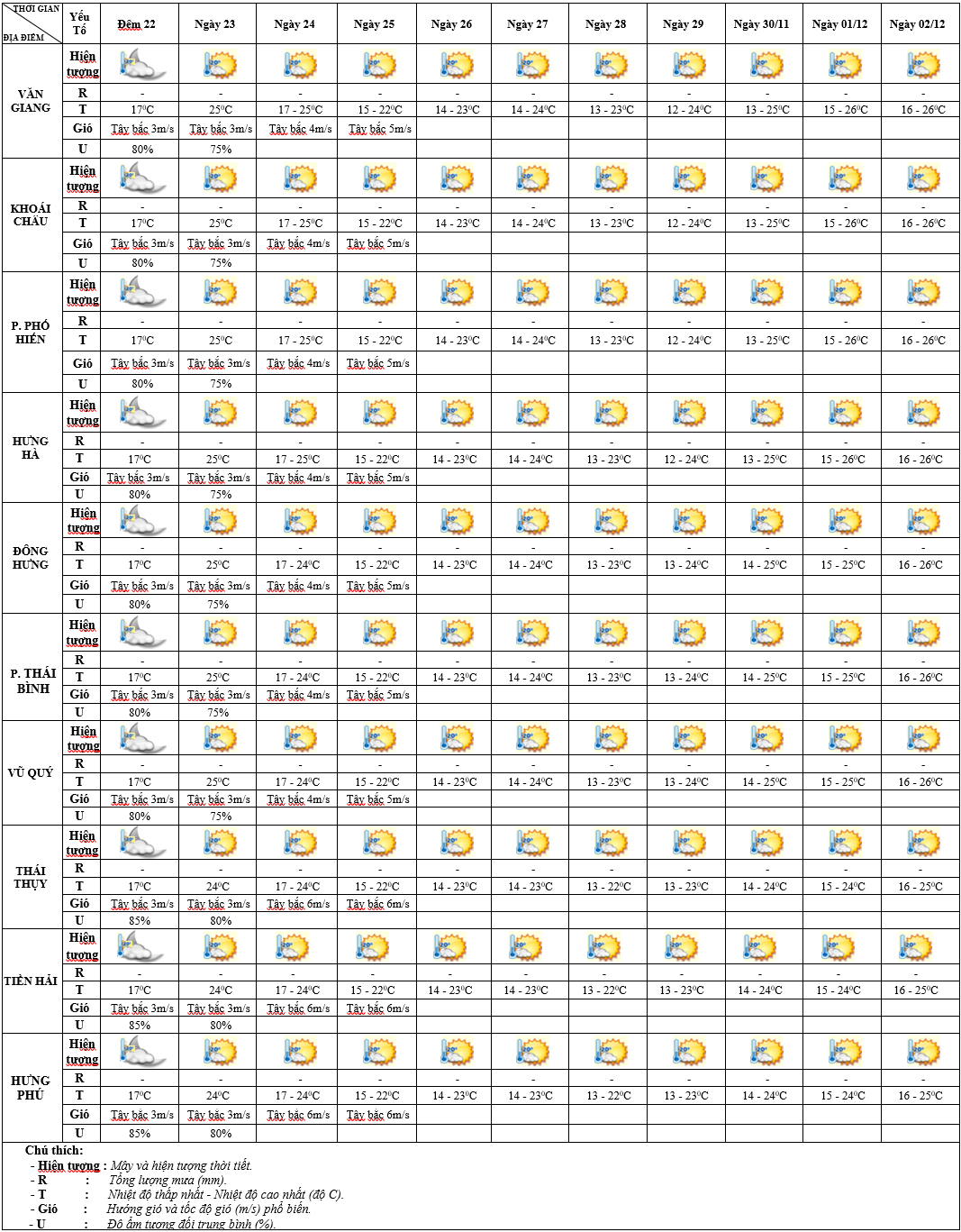 DỰ BÁO THỜI TIẾT ĐIỂM 10 NGÀY KHU VỰC HƯNG YÊN TỪ ĐÊM 22/11 - 02/12/2025