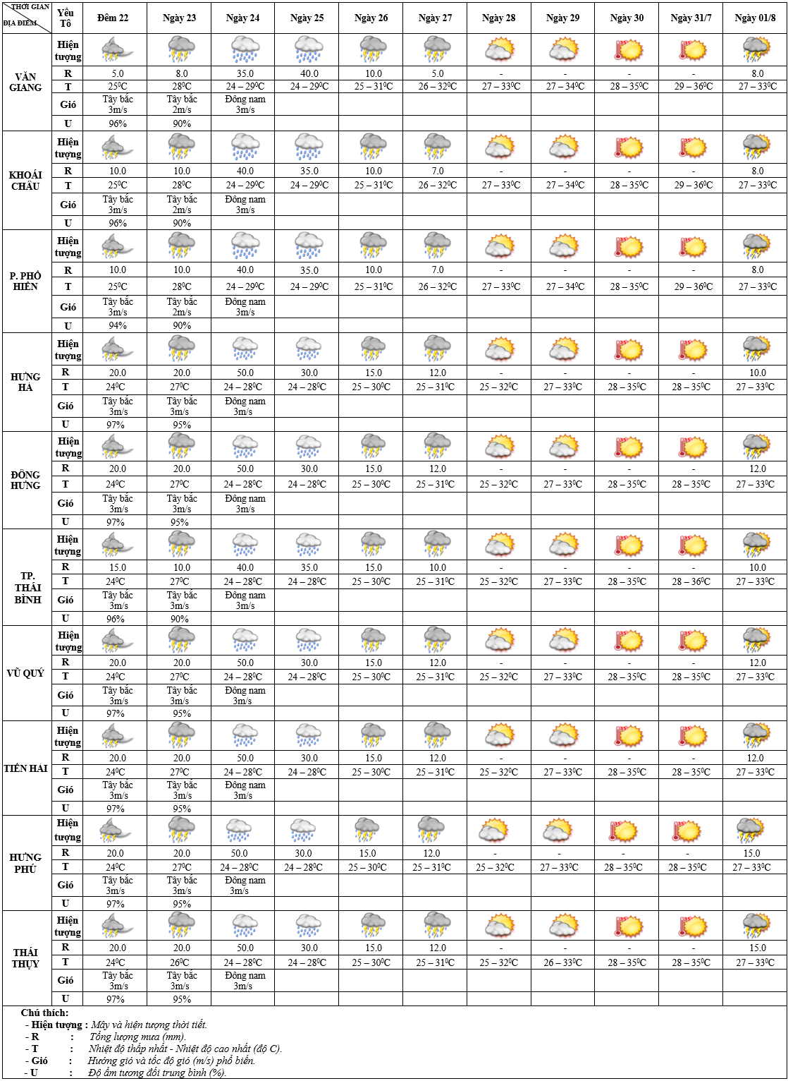 DỰ BÁO THỜI TIẾT ĐIỂM 10 NGÀY KHU VỰC HƯNG YÊN TỪ ĐÊM 22/7 – 01/8/2025