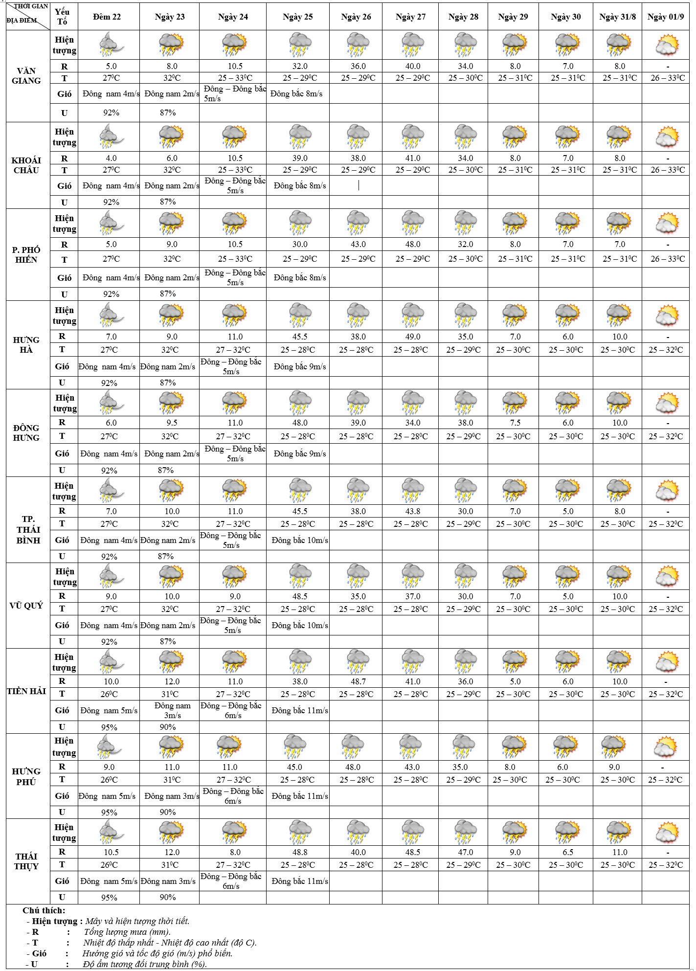 DỰ BÁO THỜI TIẾT ĐIỂM 10 NGÀY KHU VỰC HƯNG YÊN TỪ ĐÊM 22/8 – 01/9/2025