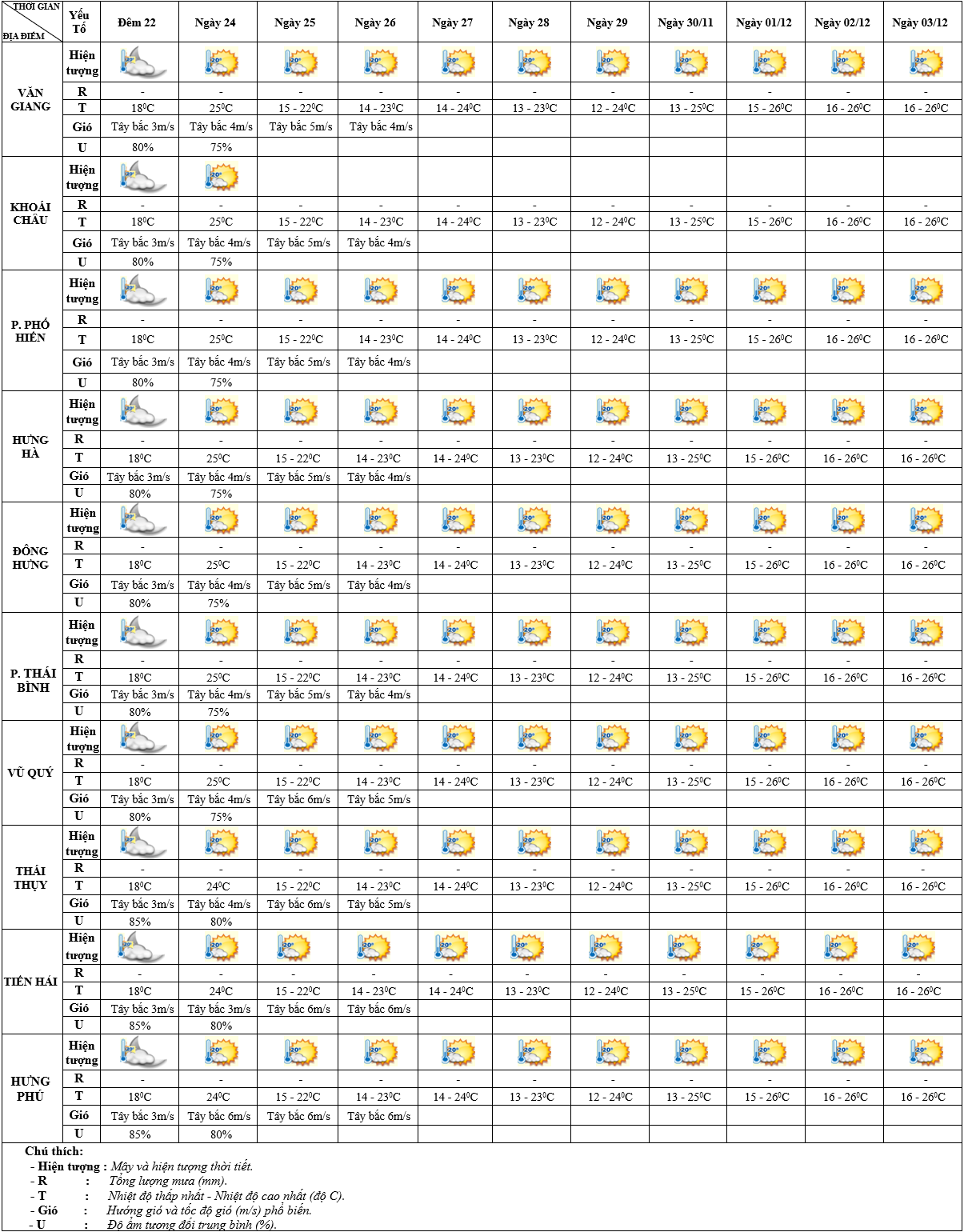• DỰ BÁO THỜI TIẾT ĐIỂM 10 NGÀY KHU VỰC HƯNG YÊN TỪ ĐÊM 03 - 13/12/2025