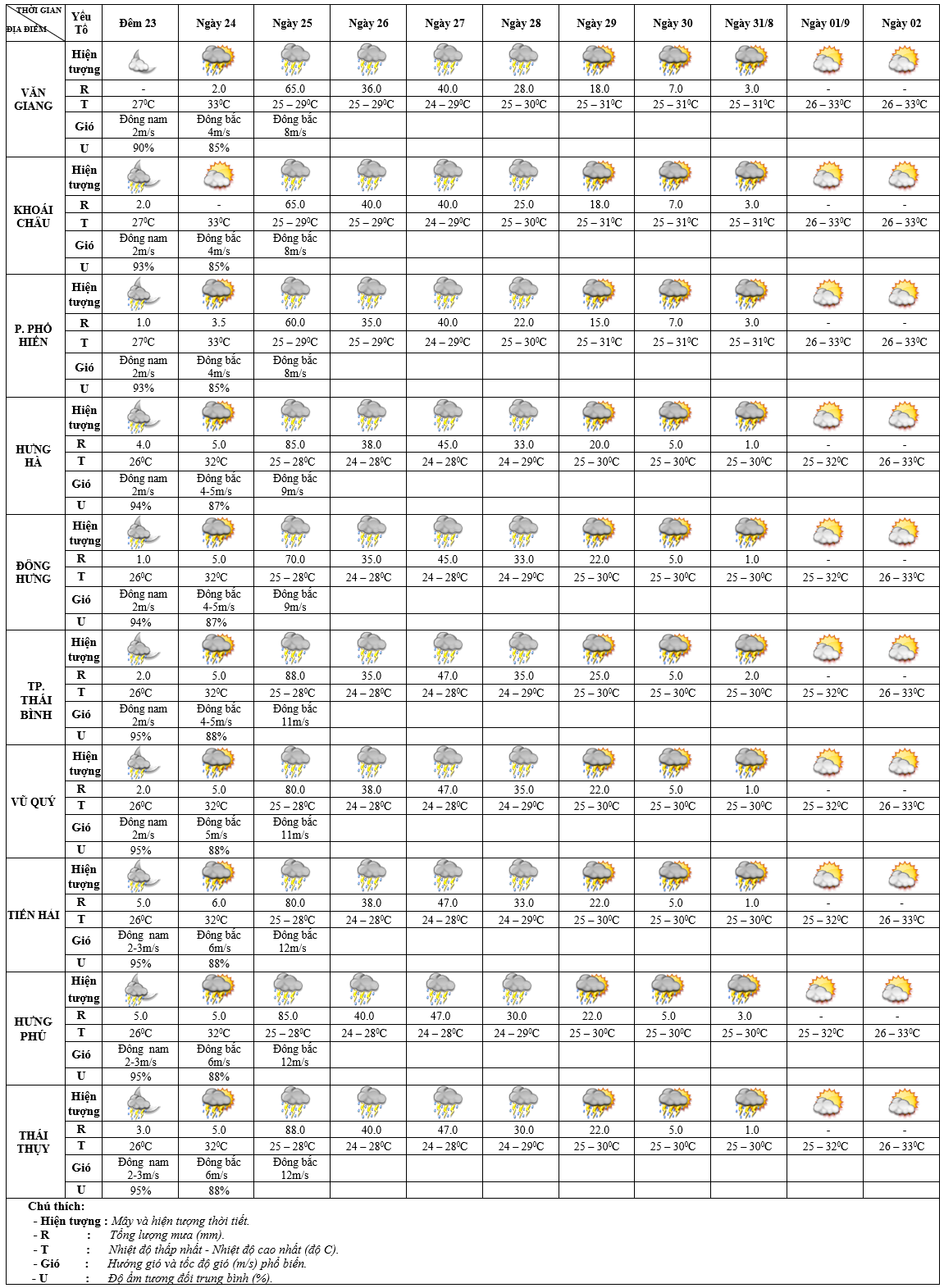 DỰ BÁO THỜI TIẾT ĐIỂM 10 NGÀY KHU VỰC HƯNG YÊN TỪ ĐÊM 23/8 – 02/9/2025