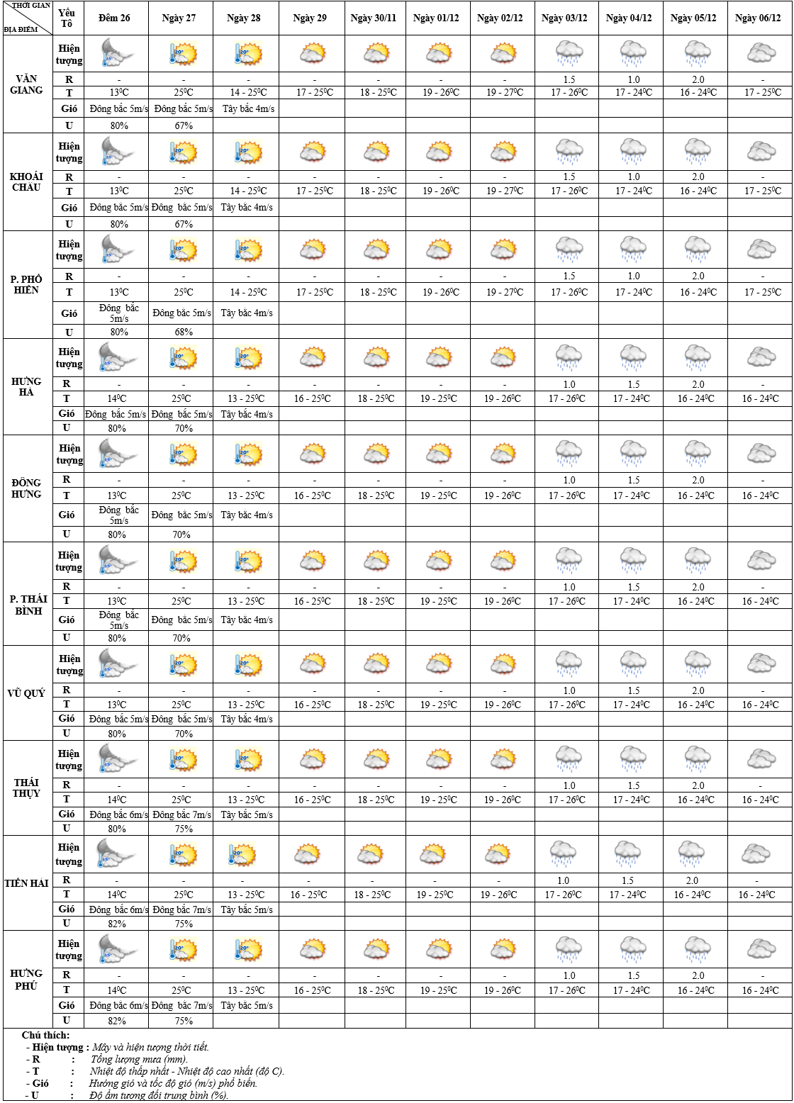 DỰ BÁO THỜI TIẾT ĐIỂM 10 NGÀY KHU VỰC HƯNG YÊN TỪ ĐÊM 26/11 - 06/12/2025
