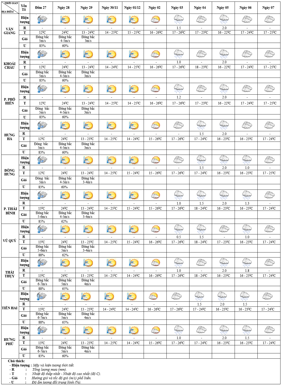 DỰ BÁO THỜI TIẾT ĐIỂM 10 NGÀY KHU VỰC HƯNG YÊN TỪ ĐÊM 27/11 - 07/12/2025