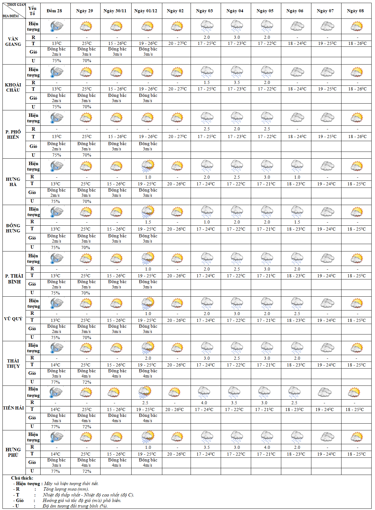DỰ BÁO THỜI TIẾT ĐIỂM 10 NGÀY KHU VỰC HƯNG YÊN TỪ ĐÊM 28/11 - 08/12/2025