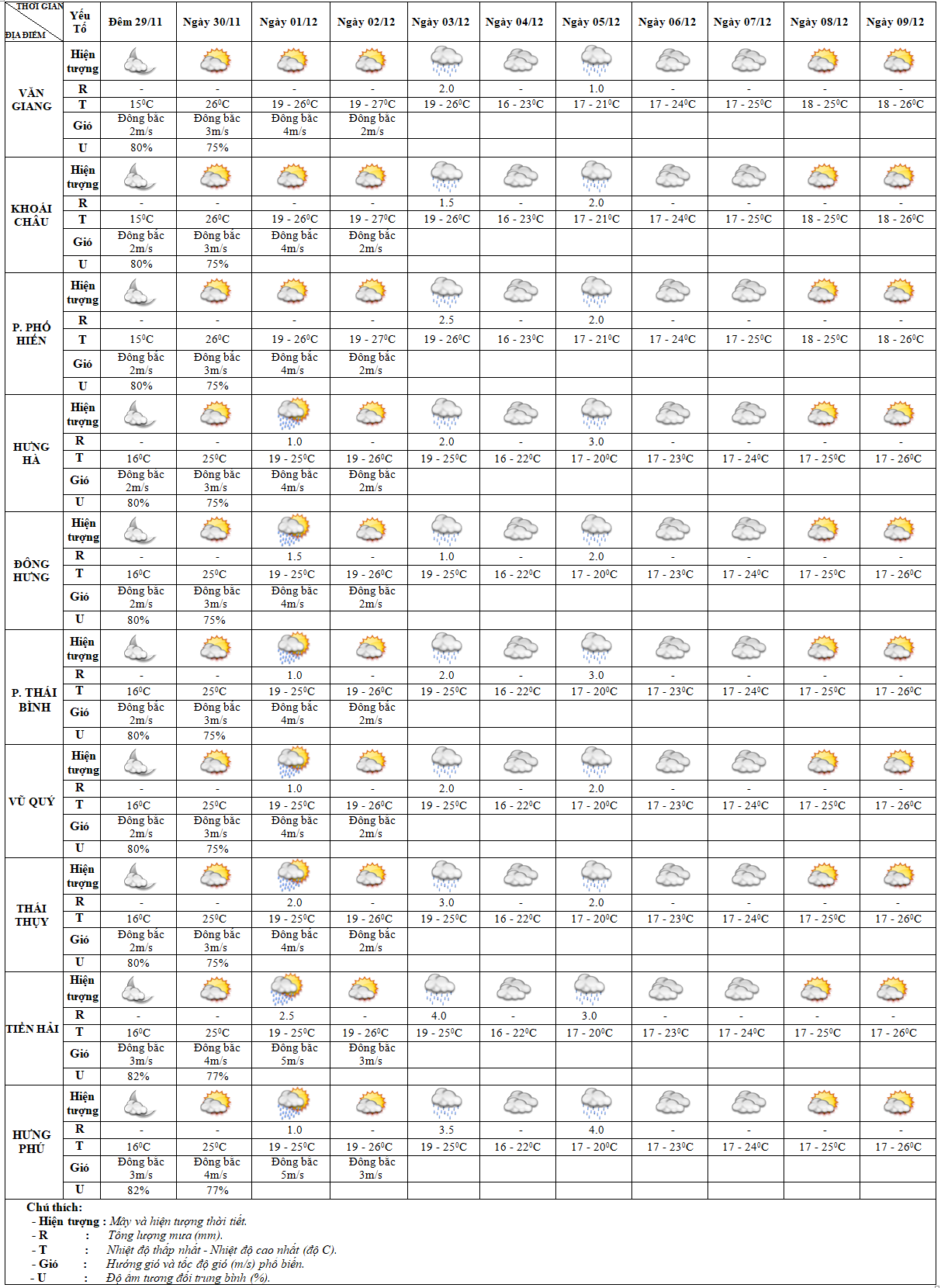 DỰ BÁO THỜI TIẾT ĐIỂM 10 NGÀY KHU VỰC HƯNG YÊN TỪ ĐÊM 29/11 - 09/12/2025