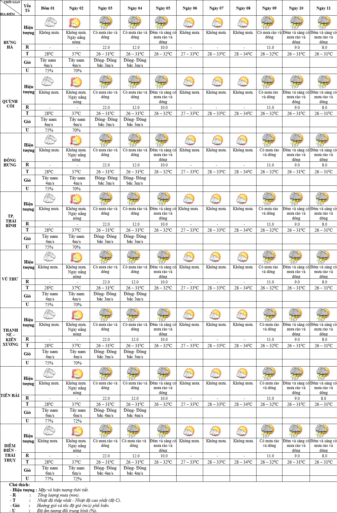 DỰ BÁO THỜI TIẾT ĐIỂM 10 NGÀY KHU VỰC THÁI BÌNH (RA NGÀY 01/6/2025)