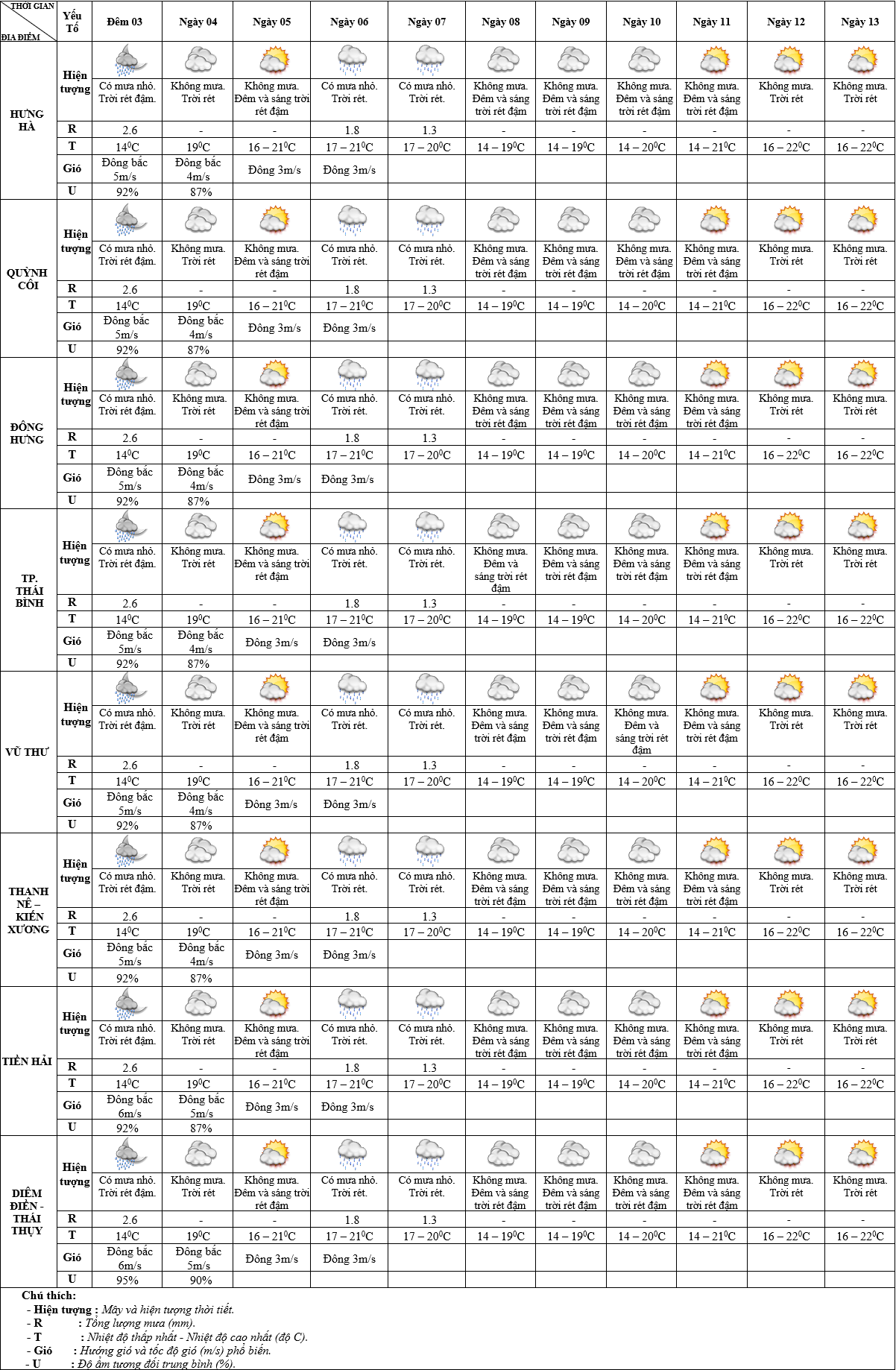 DỰ BÁO THỜI TIẾT ĐIỂM 10 NGÀY KHU VỰC THÁI BÌNH TỪ ĐÊM 03 – 13/02/2025