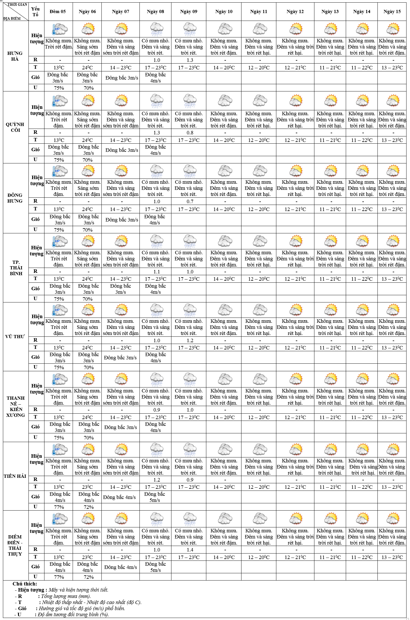 DỰ BÁO THỜI TIẾT ĐIỂM 10 NGÀY KHU VỰC THÁI BÌNH TỪ ĐÊM 05 – 15/01/2025