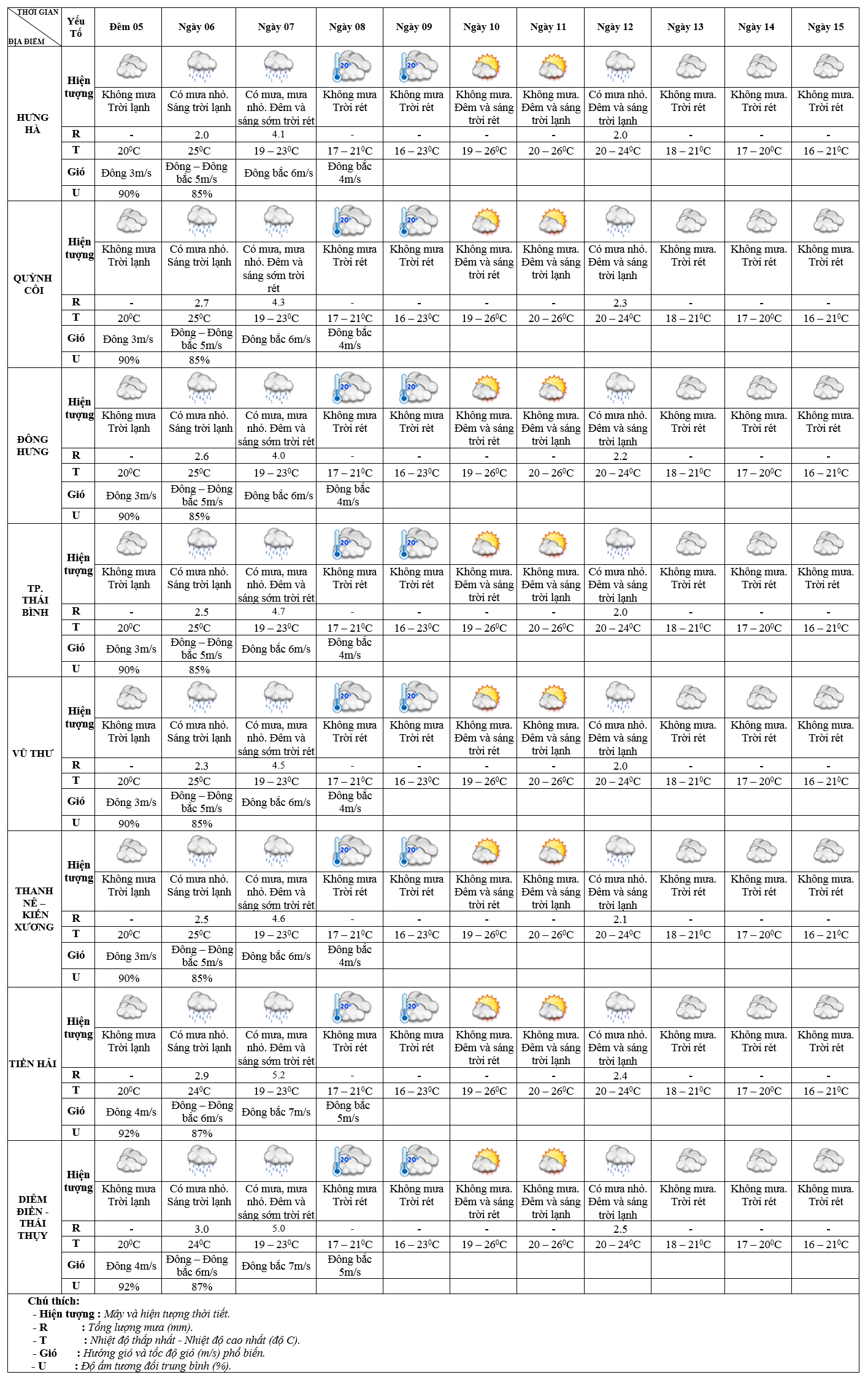 DỰ BÁO THỜI TIẾT ĐIỂM 10 NGÀY KHU VỰC THÁI BÌNH TỪ ĐÊM 05 – 15/12/2024