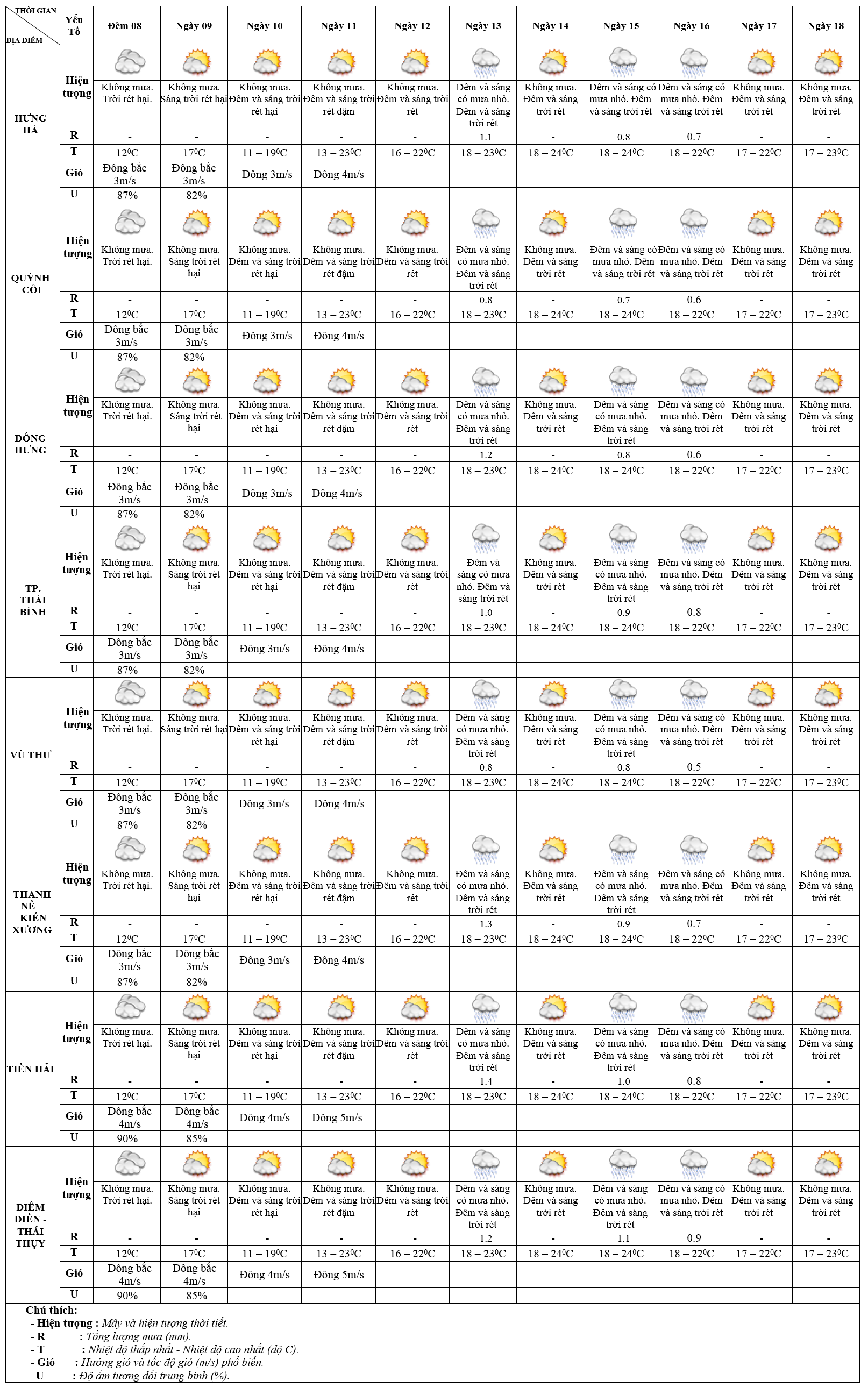 DỰ BÁO THỜI TIẾT ĐIỂM 10 NGÀY KHU VỰC THÁI BÌNH TỪ ĐÊM 08 – 18/02/2025