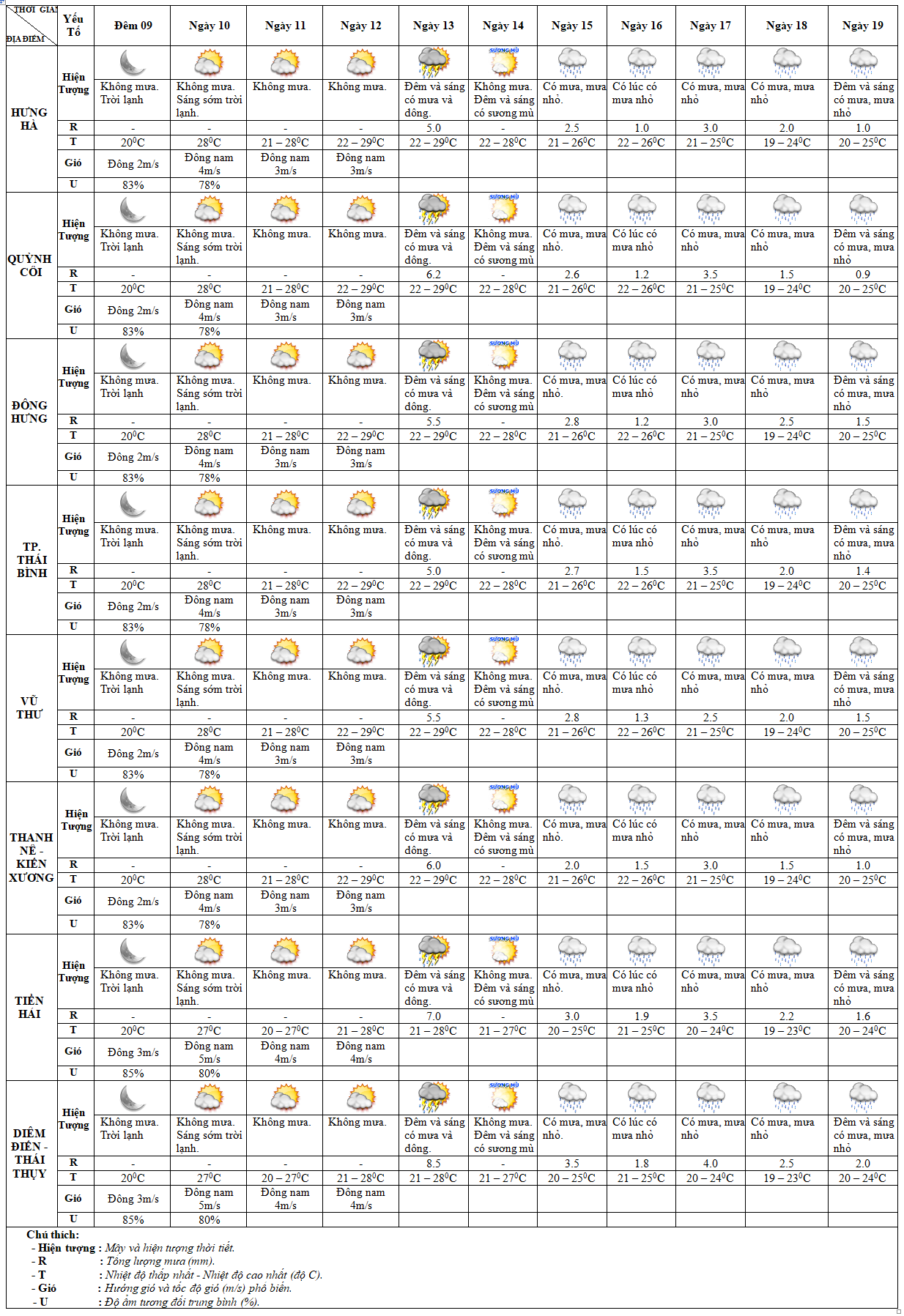 DỰ BÁO THỜI TIẾT ĐIỂM 10 NGÀY KHU VỰC THÁI BÌNH TỪ ĐÊM 09 – 19/4/2022
