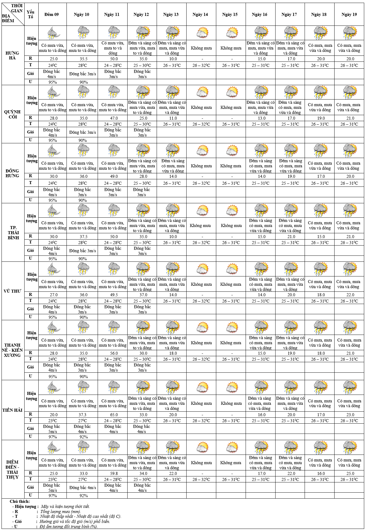 DỰ BÁO THỜI TIẾT ĐIỂM 10 NGÀY KHU VỰC THÁI BÌNH TỪ ĐÊM 09 – 19/9/2024