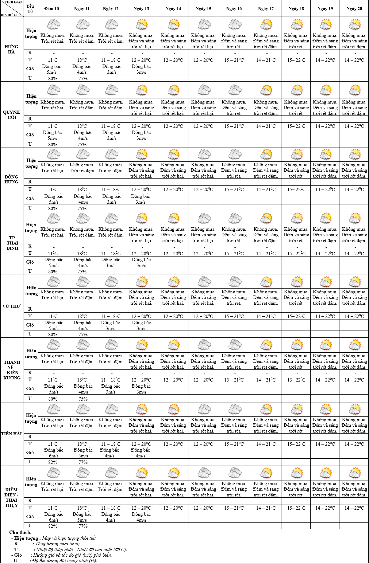 DỰ BÁO THỜI TIẾT ĐIỂM 10 NGÀY KHU VỰC THÁI BÌNH TỪ ĐÊM 10 – 20/01/2025