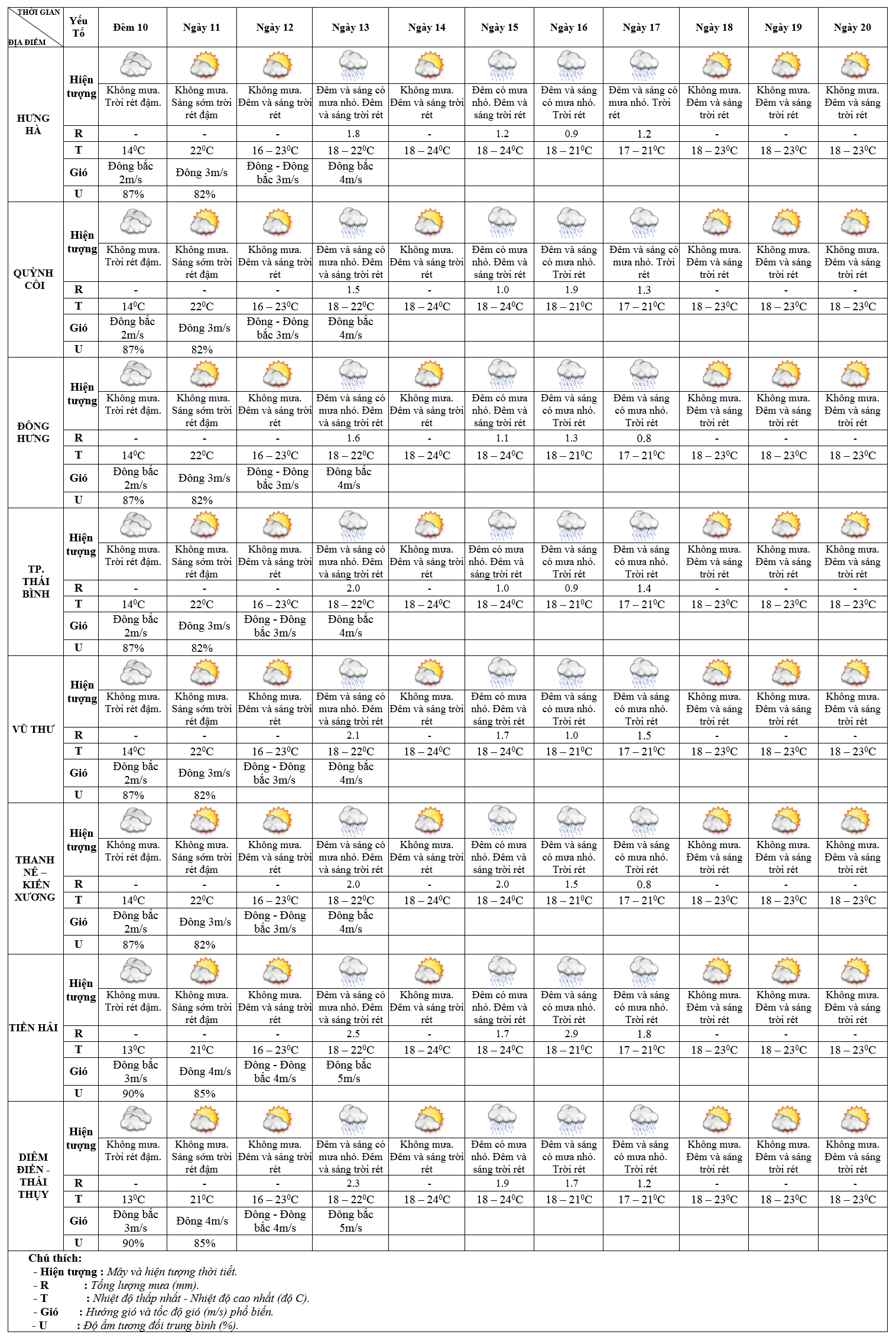 DỰ BÁO THỜI TIẾT ĐIỂM 10 NGÀY KHU VỰC THÁI BÌNH TỪ ĐÊM 10 – 20/02/2025
