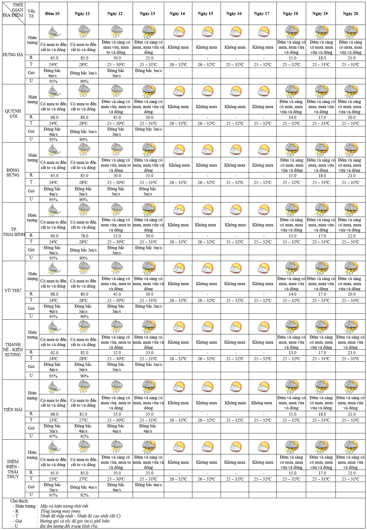 DỰ BÁO THỜI TIẾT ĐIỂM 10 NGÀY KHU VỰC THÁI BÌNH TỪ ĐÊM 10 – 20/9/2024