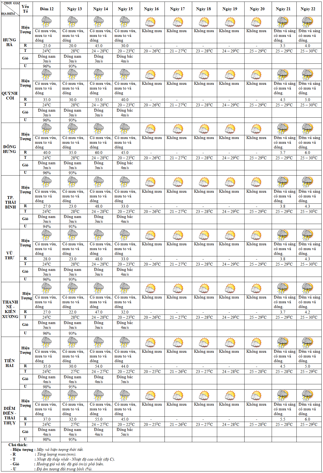 DỰ BÁO THỜI TIẾT ĐIỂM 10 NGÀY KHU VỰC THÁI BÌNH TỪ ĐÊM 12 – 22/5/2022