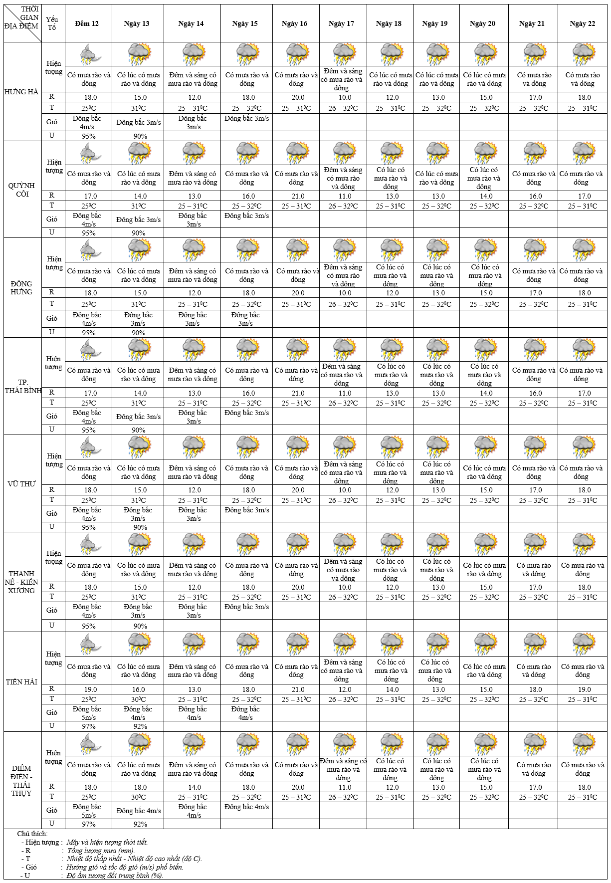 DỰ BÁO THỜI TIẾT ĐIỂM 10 NGÀY KHU VỰC THÁI BÌNH TỪ ĐÊM 12 – 22/9/2024