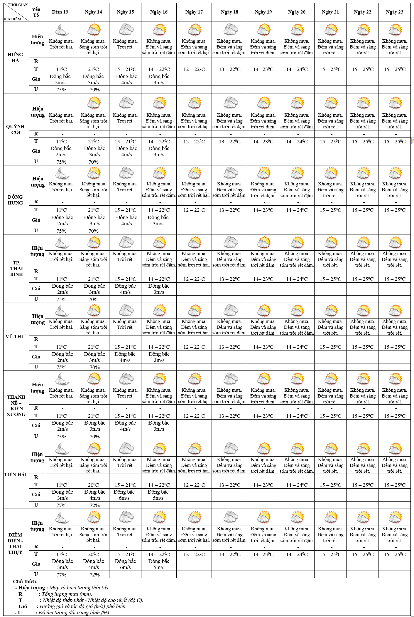 DỰ BÁO THỜI TIẾT ĐIỂM 10 NGÀY KHU VỰC THÁI BÌNH TỪ ĐÊM 13 – 23/01/2025