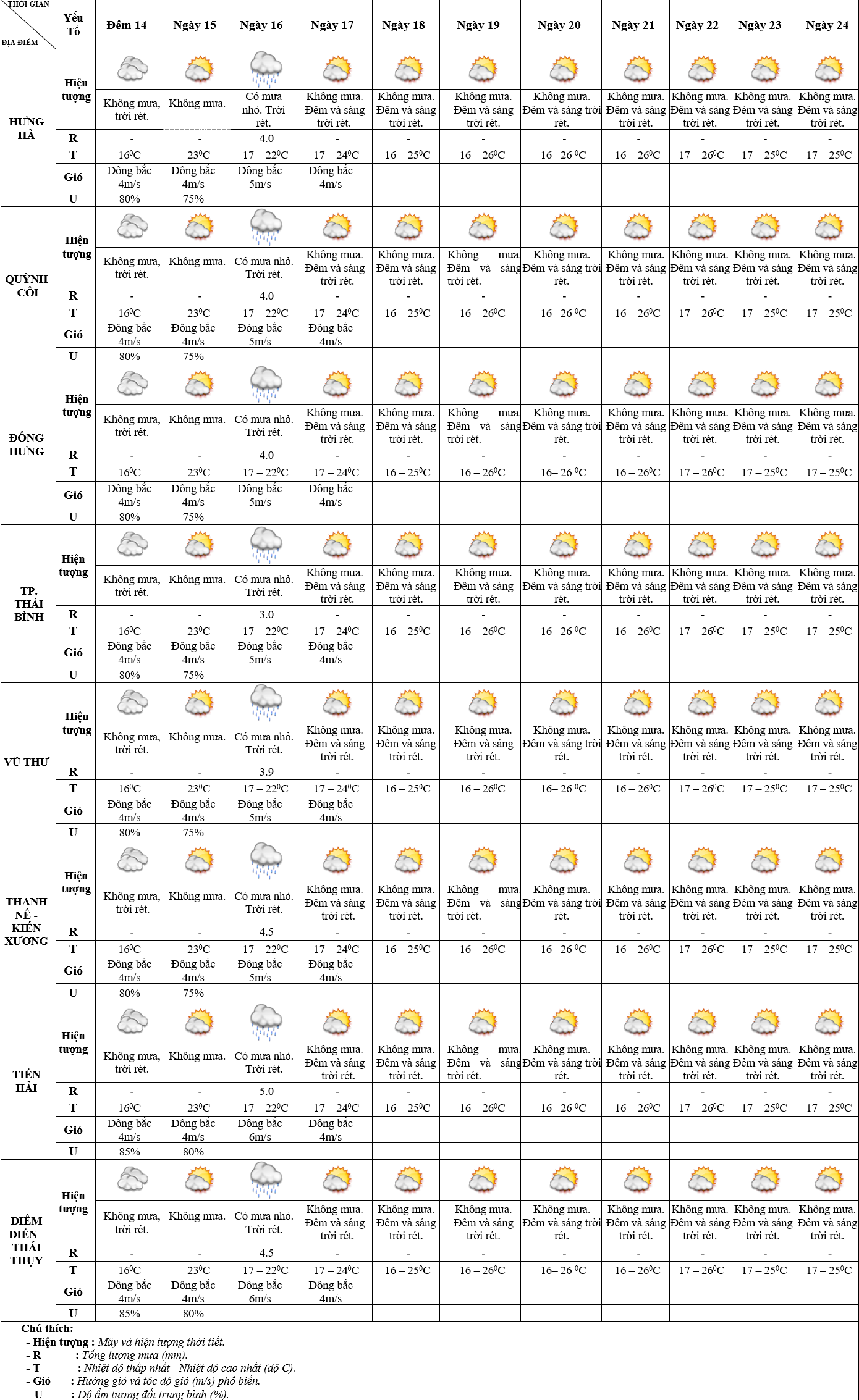 DỰ BÁO THỜI TIẾT ĐIỂM 10 NGÀY KHU VỰC THÁI BÌNH TỪ ĐÊM 14 – 24/11/2023