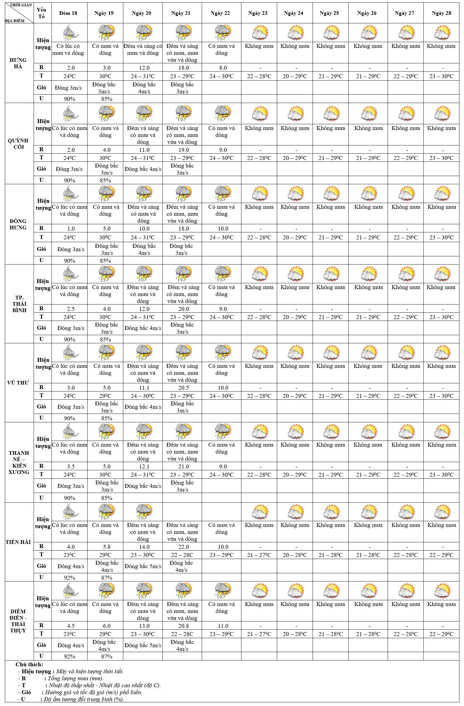 DỰ BÁO THỜI TIẾT ĐIỂM 10 NGÀY KHU VỰC THÁI BÌNH TỪ ĐÊM 18 – 28/10/2024