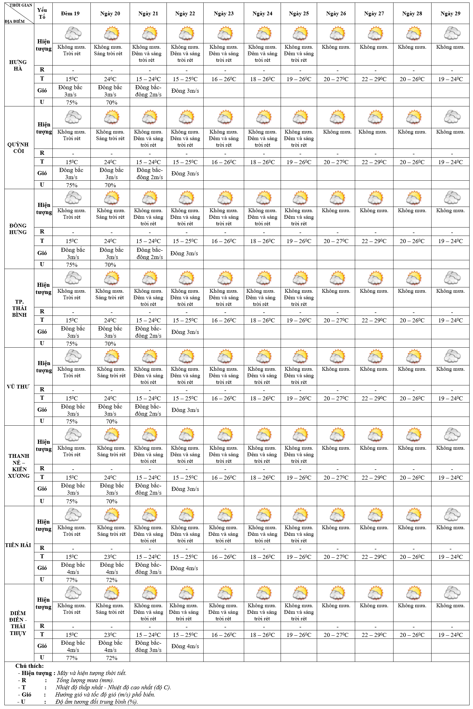 DỰ BÁO THỜI TIẾT ĐIỂM 10 NGÀY KHU VỰC THÁI BÌNH TỪ ĐÊM 19 – 29/3/2025
