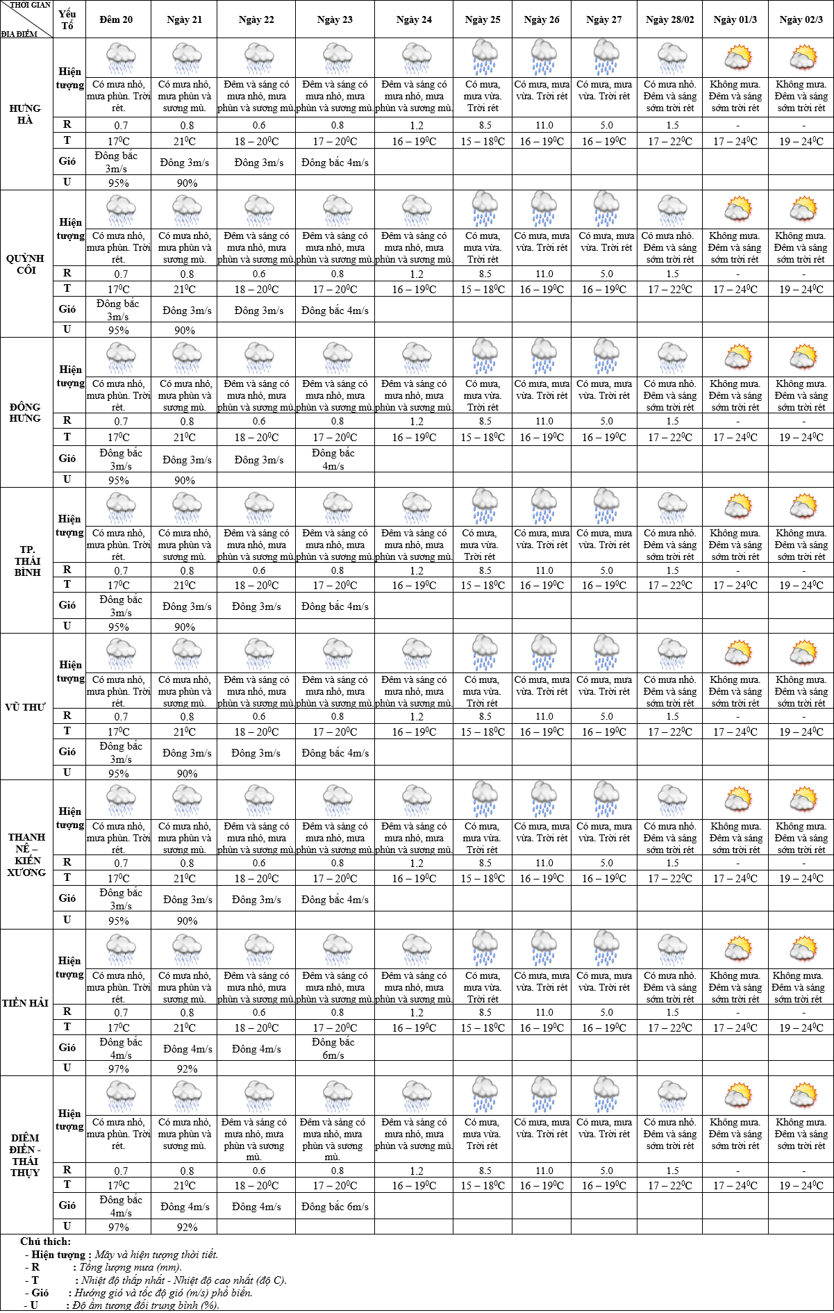 DỰ BÁO THỜI TIẾT ĐIỂM 10 NGÀY KHU VỰC THÁI BÌNH TỪ ĐÊM 20/02 – 02/3/2025