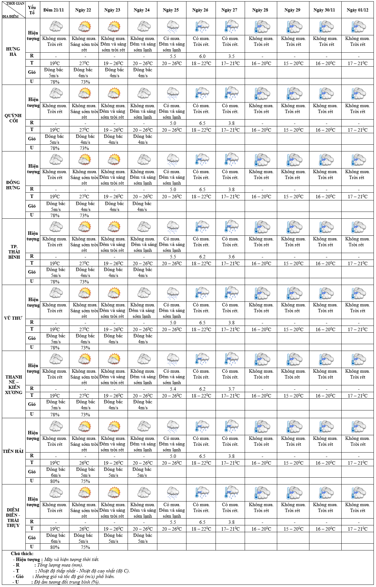 DỰ BÁO THỜI TIẾT ĐIỂM 10 NGÀY KHU VỰC THÁI BÌNH TỪ ĐÊM 21/11 – 01/12/2024