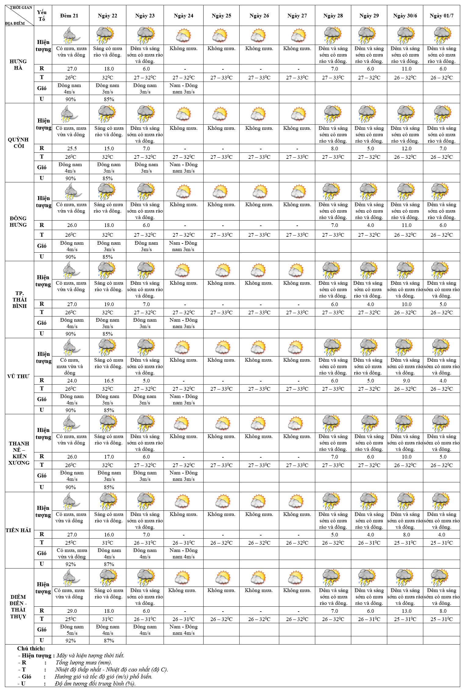 DỰ BÁO THỜI TIẾT ĐIỂM 10 NGÀY KHU VỰC THÁI BÌNH TỪ ĐÊM 21/6 – 01/7/2025