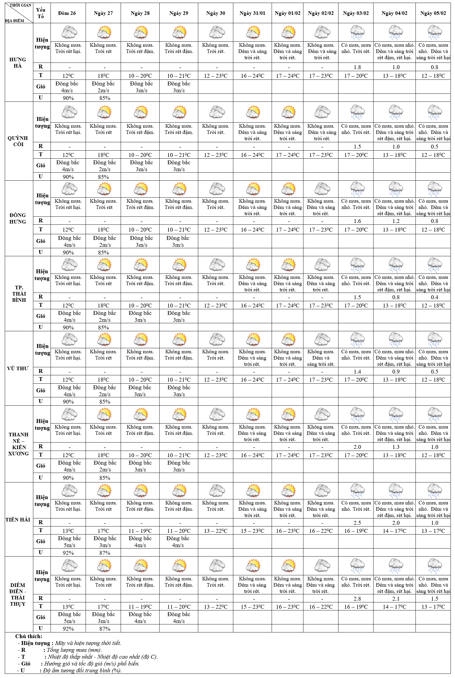 DỰ BÁO THỜI TIẾT ĐIỂM 10 NGÀY KHU VỰC THÁI BÌNH TỪ ĐÊM 26/01 – 05/02/2025