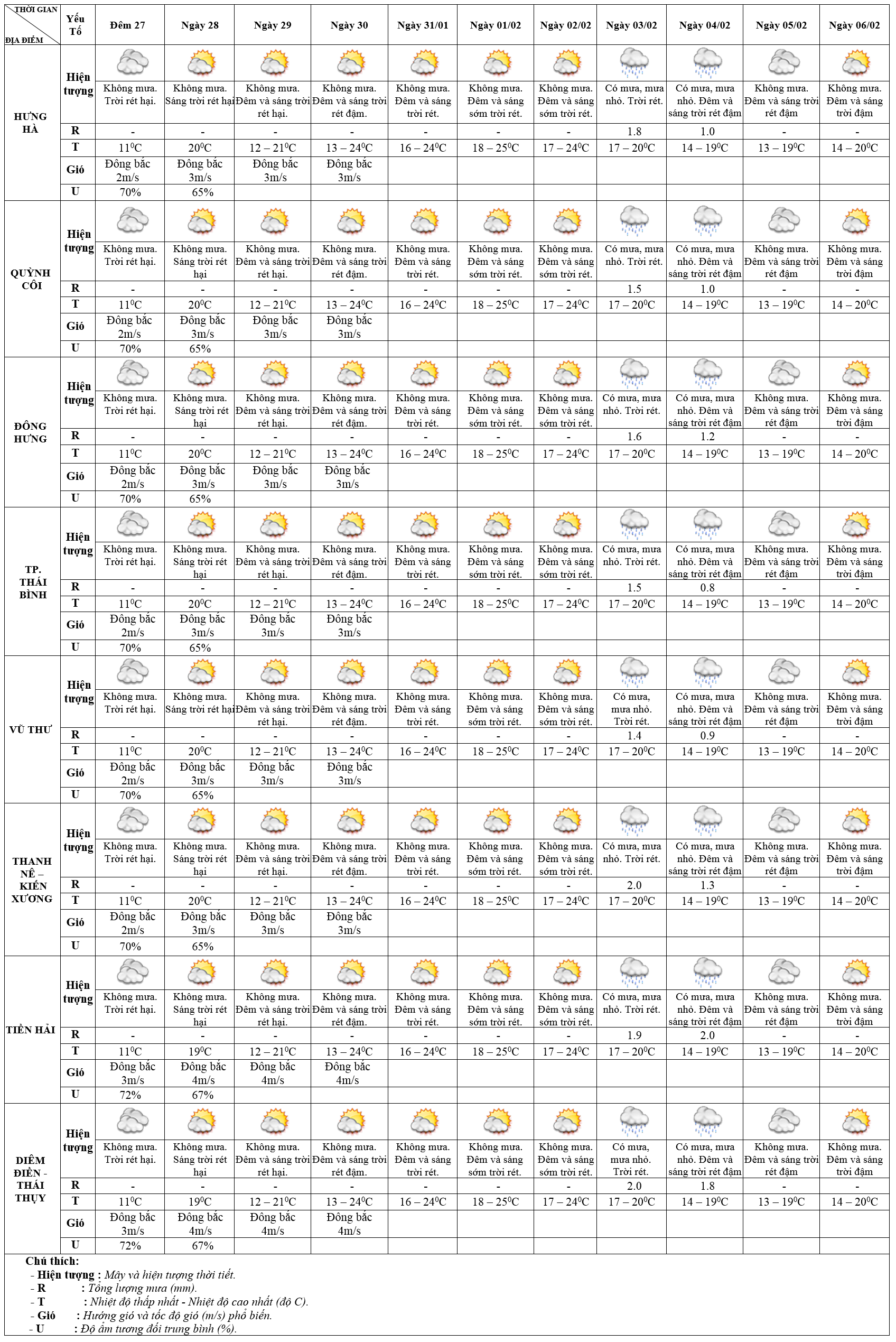 DỰ BÁO THỜI TIẾT ĐIỂM 10 NGÀY KHU VỰC THÁI BÌNH TỪ ĐÊM 27/01 – 06/02/2025