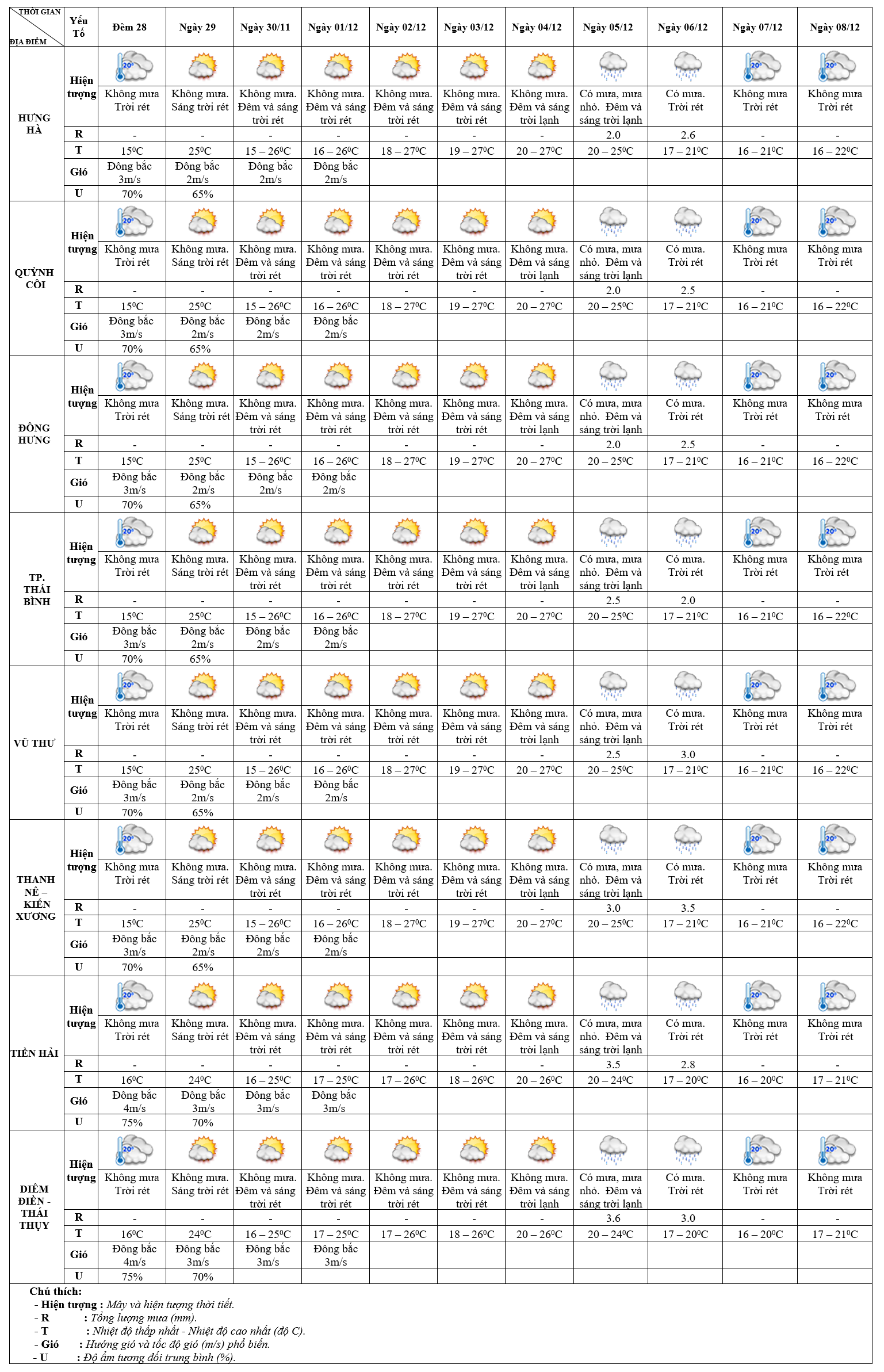 DỰ BÁO THỜI TIẾT ĐIỂM 10 NGÀY KHU VỰC THÁI BÌNH TỪ ĐÊM 28/11 – 08/12/2024