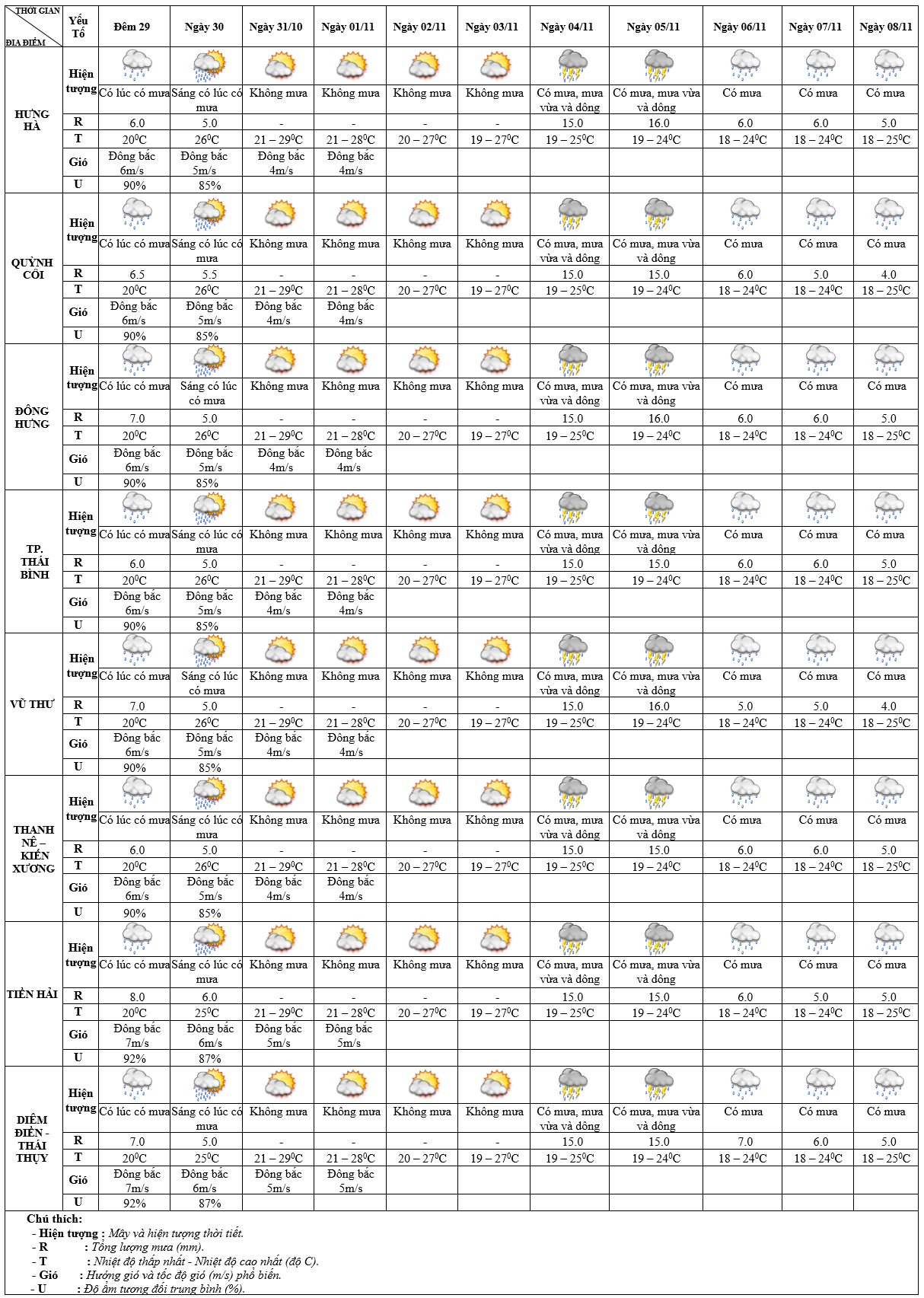 DỰ BÁO THỜI TIẾT ĐIỂM 10 NGÀY KHU VỰC THÁI BÌNH TỪ ĐÊM 29/10 – 08/11/2024